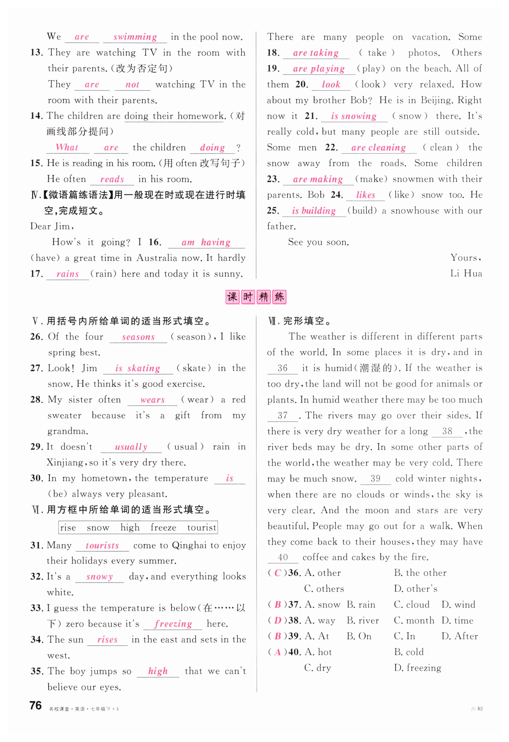 注:目前有些书本章节名称可能整理的还不是很完善,但都是按照顺序排列的,请同学们按照顺序仔细查找。练习册 2025年名校课堂七年级英语下册人教版四川专版 答案主要是用来给同学们做完题方便对答案用的,请勿直接抄袭。