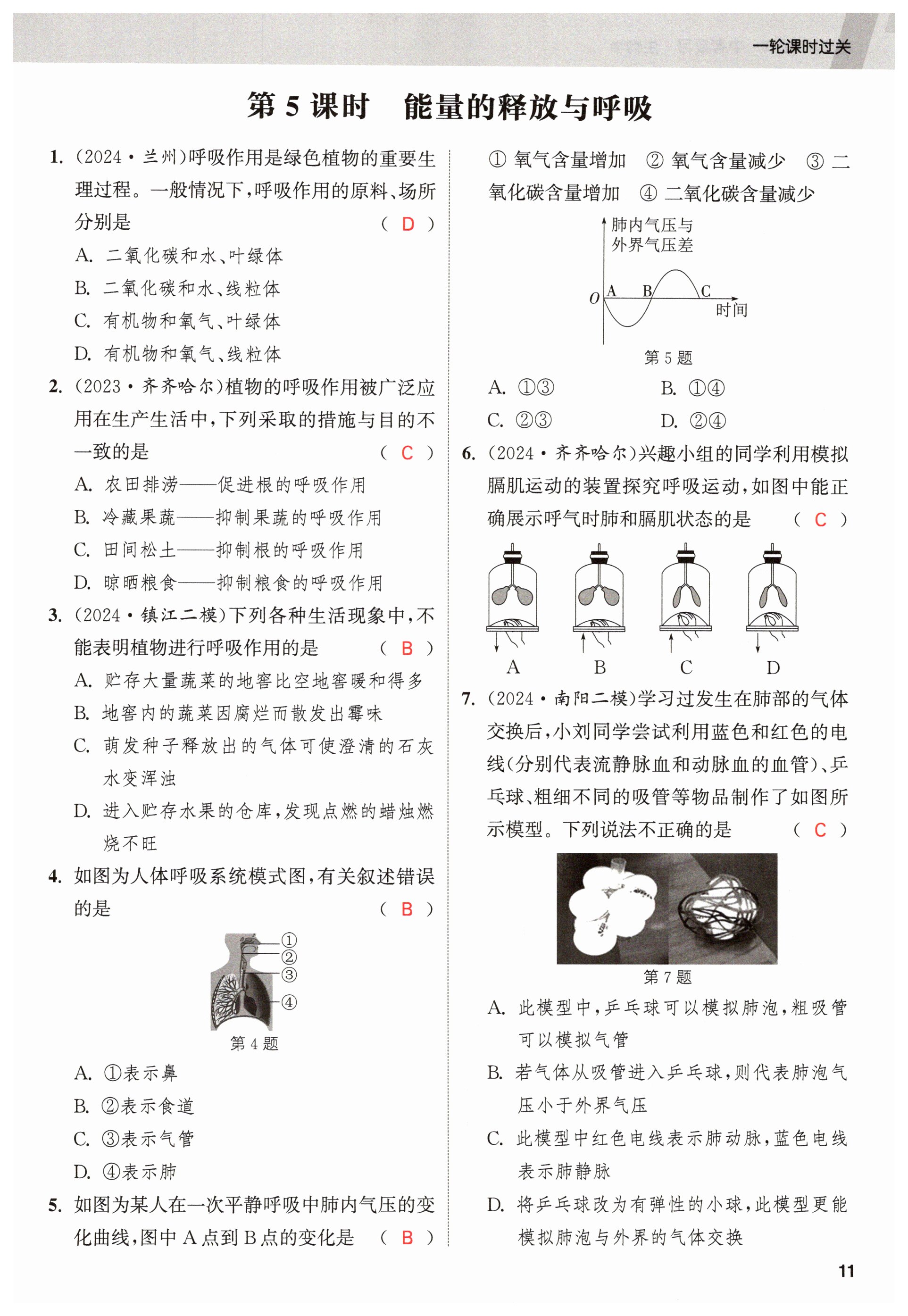 注:目前有些书本章节名称可能整理的还不是很完善,但都是按照顺序排列的,请同学们按照顺序仔细查找。练习册 2025年课时作业本中考复习生物 答案主要是用来给同学们做完题方便对答案用的,请勿直接抄袭。