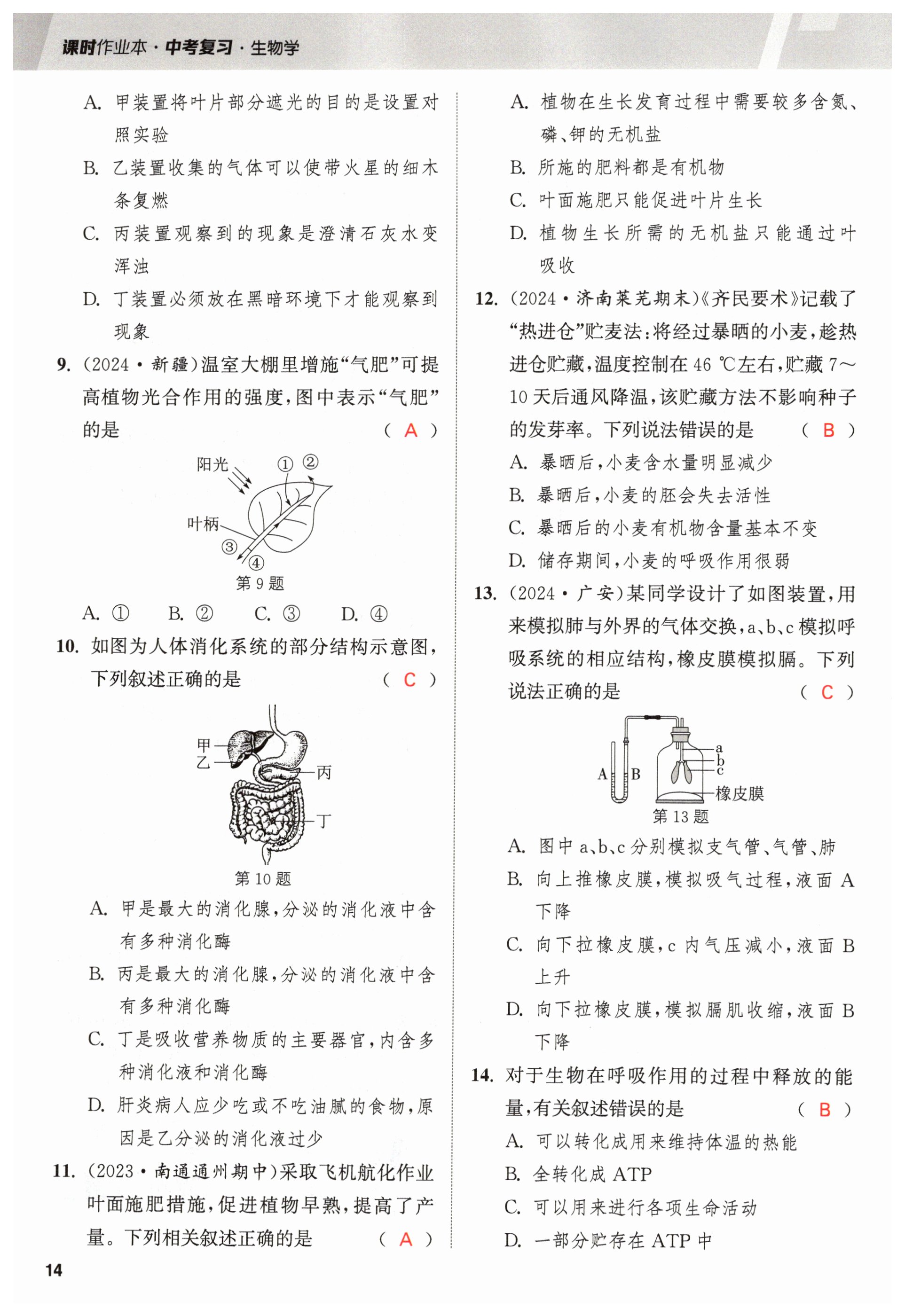 注:目前有些书本章节名称可能整理的还不是很完善,但都是按照顺序排列的,请同学们按照顺序仔细查找。练习册 2025年课时作业本中考复习生物 答案主要是用来给同学们做完题方便对答案用的,请勿直接抄袭。