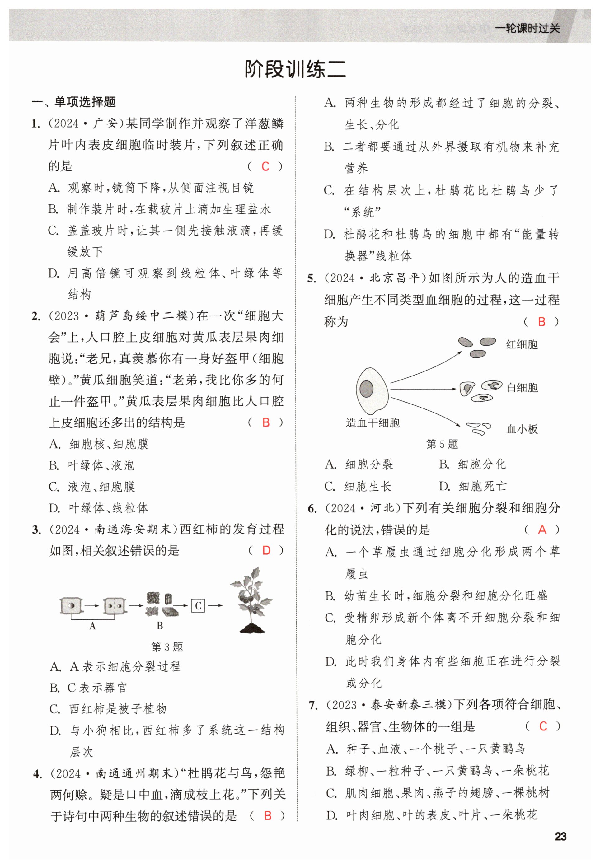 注:目前有些书本章节名称可能整理的还不是很完善,但都是按照顺序排列的,请同学们按照顺序仔细查找。练习册 2025年课时作业本中考复习生物 答案主要是用来给同学们做完题方便对答案用的,请勿直接抄袭。