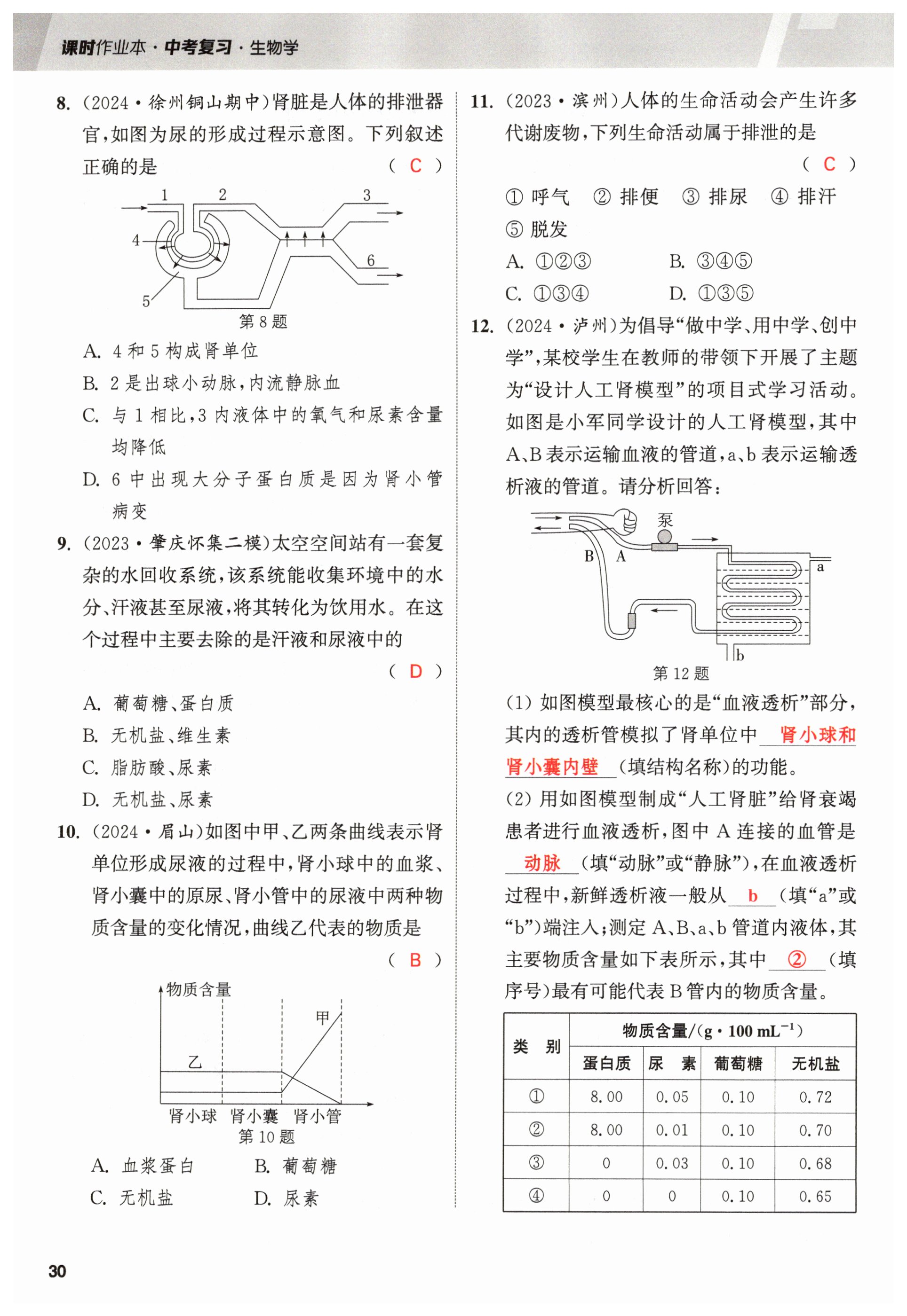 注:目前有些书本章节名称可能整理的还不是很完善,但都是按照顺序排列的,请同学们按照顺序仔细查找。练习册 2025年课时作业本中考复习生物 答案主要是用来给同学们做完题方便对答案用的,请勿直接抄袭。