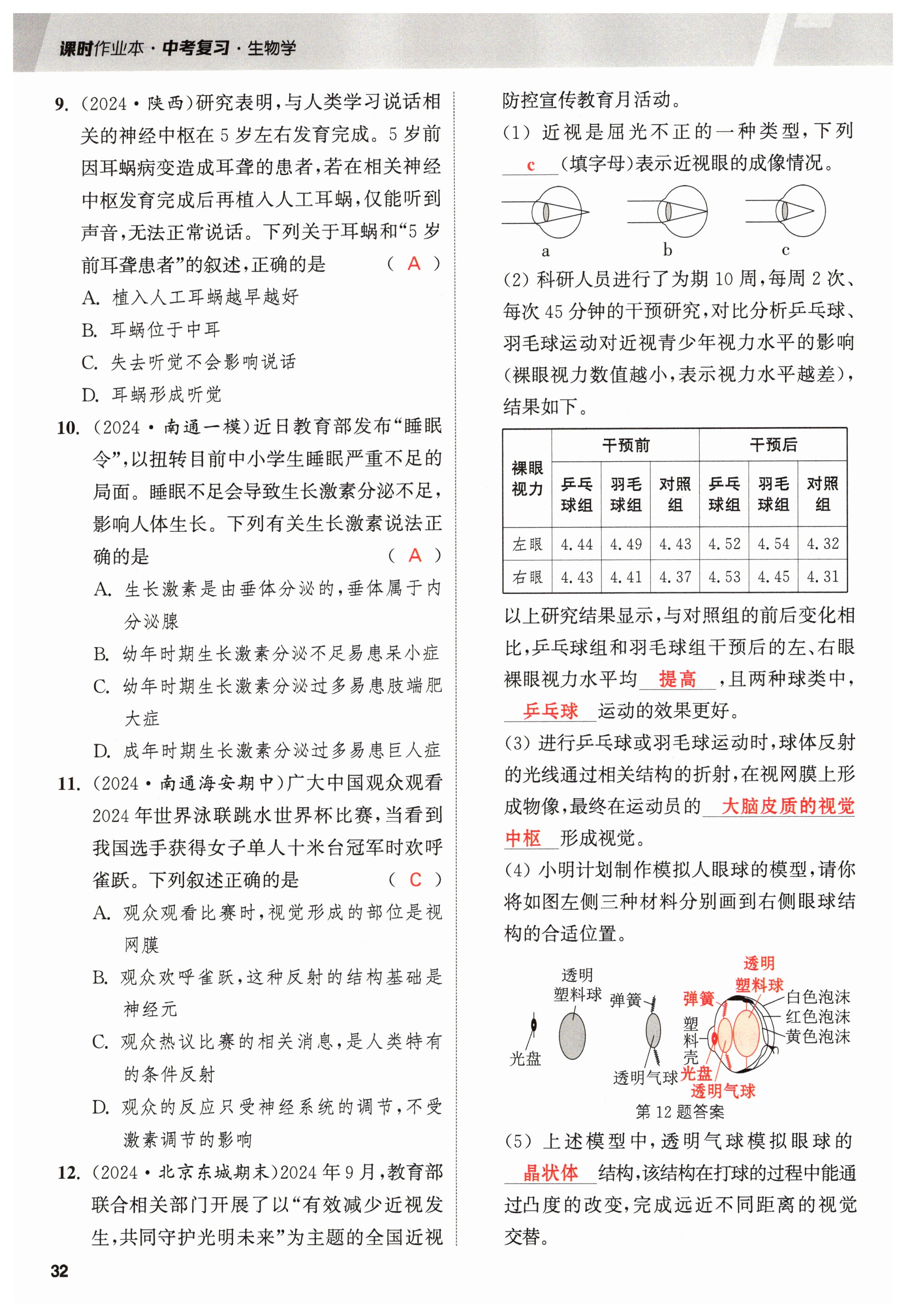 注:目前有些书本章节名称可能整理的还不是很完善,但都是按照顺序排列的,请同学们按照顺序仔细查找。练习册 2025年课时作业本中考复习生物 答案主要是用来给同学们做完题方便对答案用的,请勿直接抄袭。