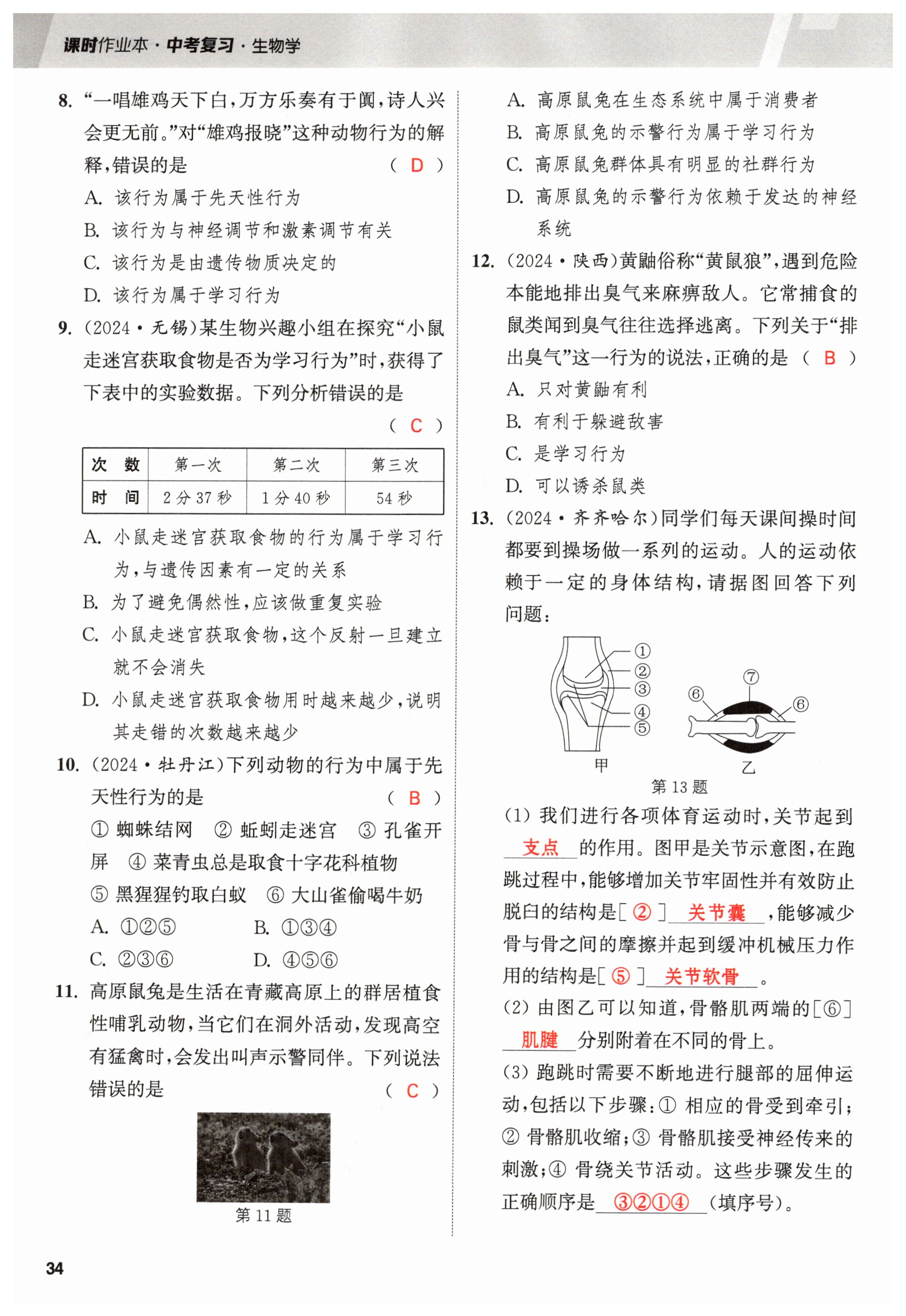 注:目前有些书本章节名称可能整理的还不是很完善,但都是按照顺序排列的,请同学们按照顺序仔细查找。练习册 2025年课时作业本中考复习生物 答案主要是用来给同学们做完题方便对答案用的,请勿直接抄袭。