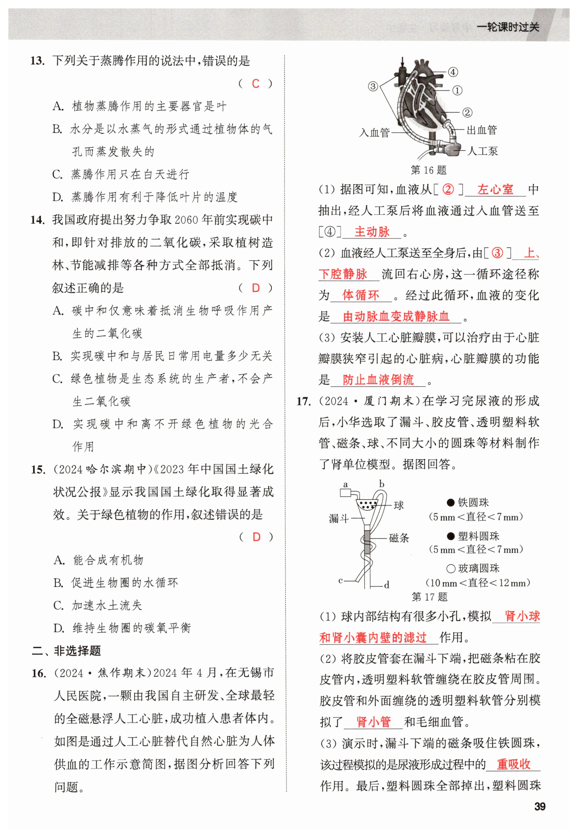 注:目前有些书本章节名称可能整理的还不是很完善,但都是按照顺序排列的,请同学们按照顺序仔细查找。练习册 2025年课时作业本中考复习生物 答案主要是用来给同学们做完题方便对答案用的,请勿直接抄袭。