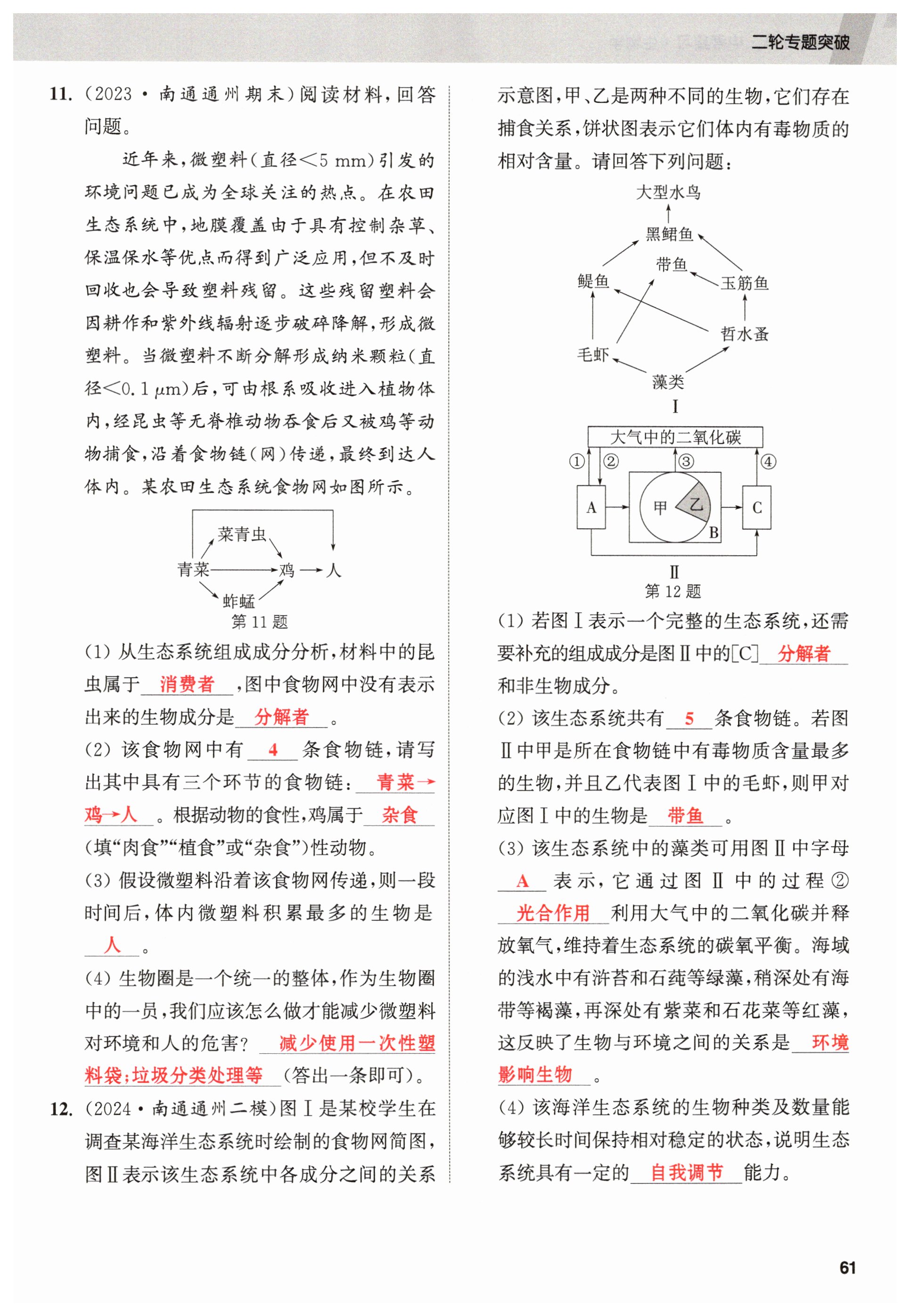 注:目前有些书本章节名称可能整理的还不是很完善,但都是按照顺序排列的,请同学们按照顺序仔细查找。练习册 2025年课时作业本中考复习生物 答案主要是用来给同学们做完题方便对答案用的,请勿直接抄袭。