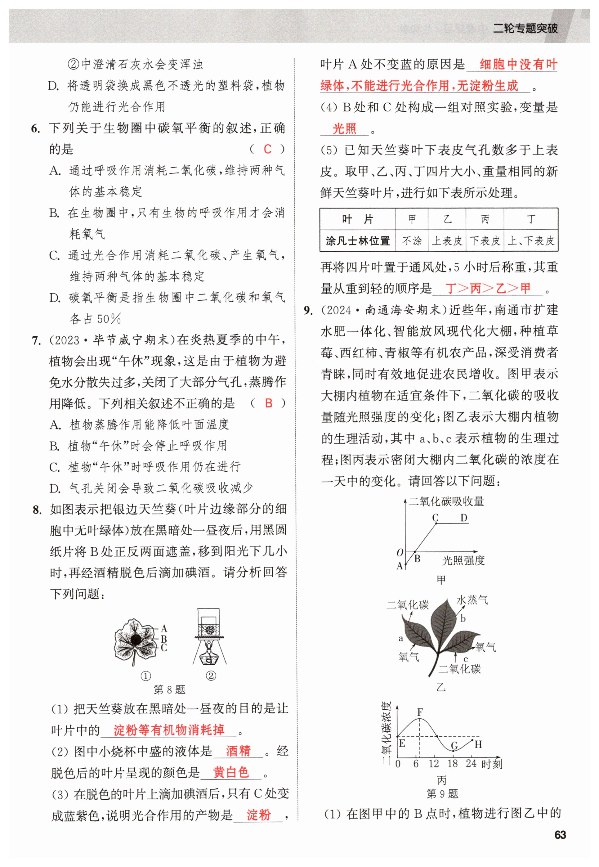 注:目前有些书本章节名称可能整理的还不是很完善,但都是按照顺序排列的,请同学们按照顺序仔细查找。练习册 2025年课时作业本中考复习生物 答案主要是用来给同学们做完题方便对答案用的,请勿直接抄袭。