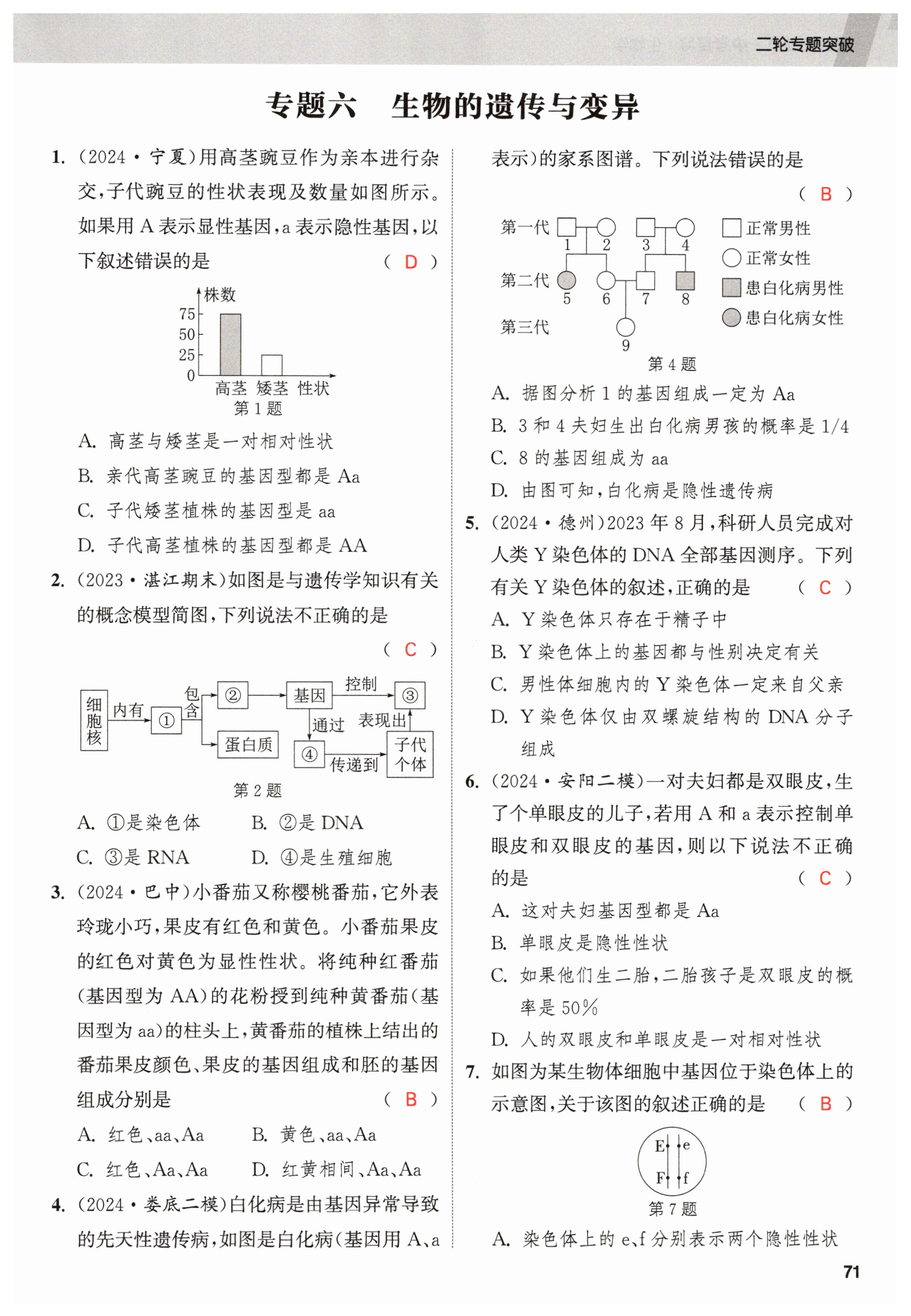 注:目前有些书本章节名称可能整理的还不是很完善,但都是按照顺序排列的,请同学们按照顺序仔细查找。练习册 2025年课时作业本中考复习生物 答案主要是用来给同学们做完题方便对答案用的,请勿直接抄袭。