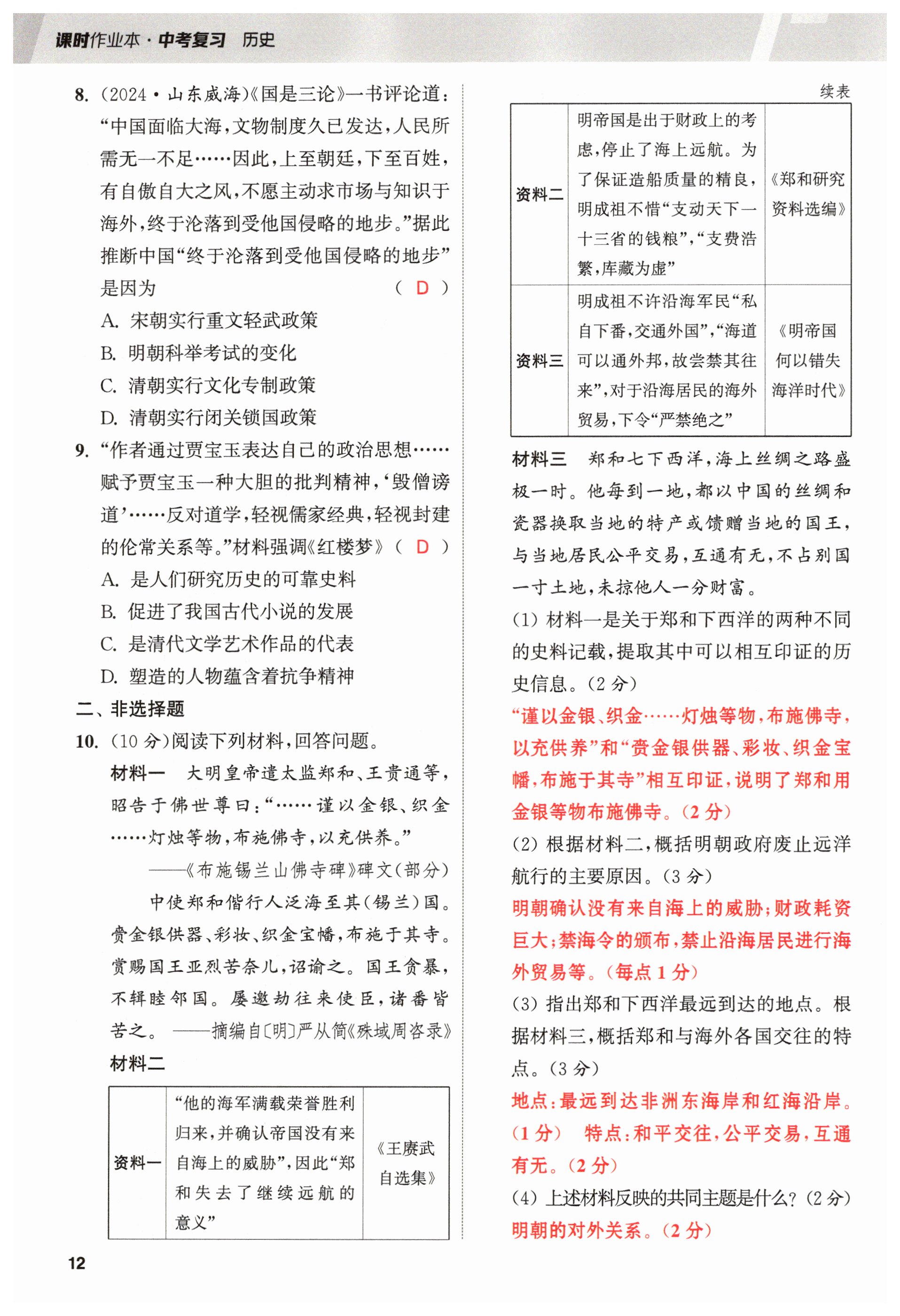 注:目前有些书本章节名称可能整理的还不是很完善,但都是按照顺序排列的,请同学们按照顺序仔细查找。练习册 2025年课时作业本中考复习历史 答案主要是用来给同学们做完题方便对答案用的,请勿直接抄袭。