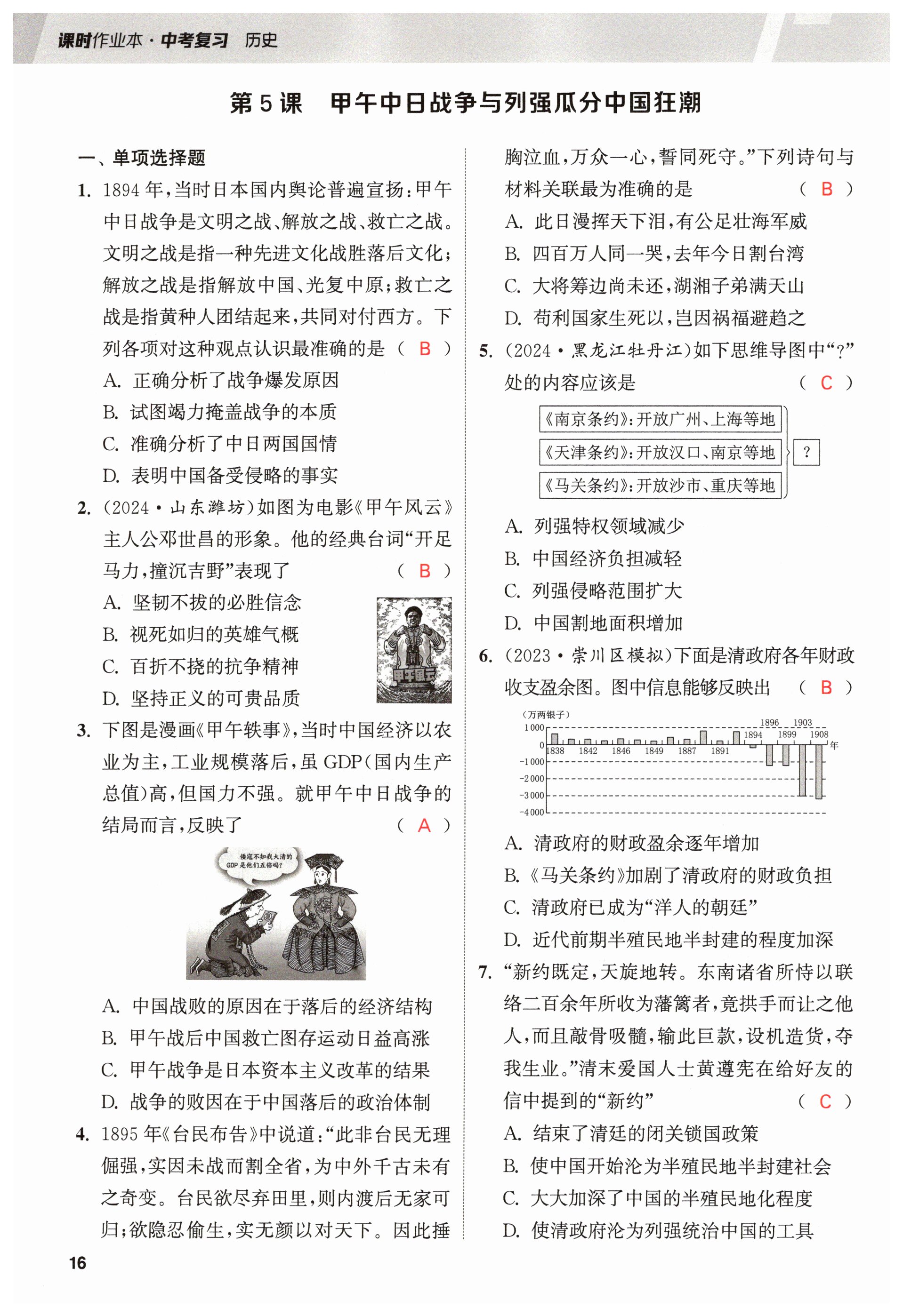 注:目前有些书本章节名称可能整理的还不是很完善,但都是按照顺序排列的,请同学们按照顺序仔细查找。练习册 2025年课时作业本中考复习历史 答案主要是用来给同学们做完题方便对答案用的,请勿直接抄袭。
