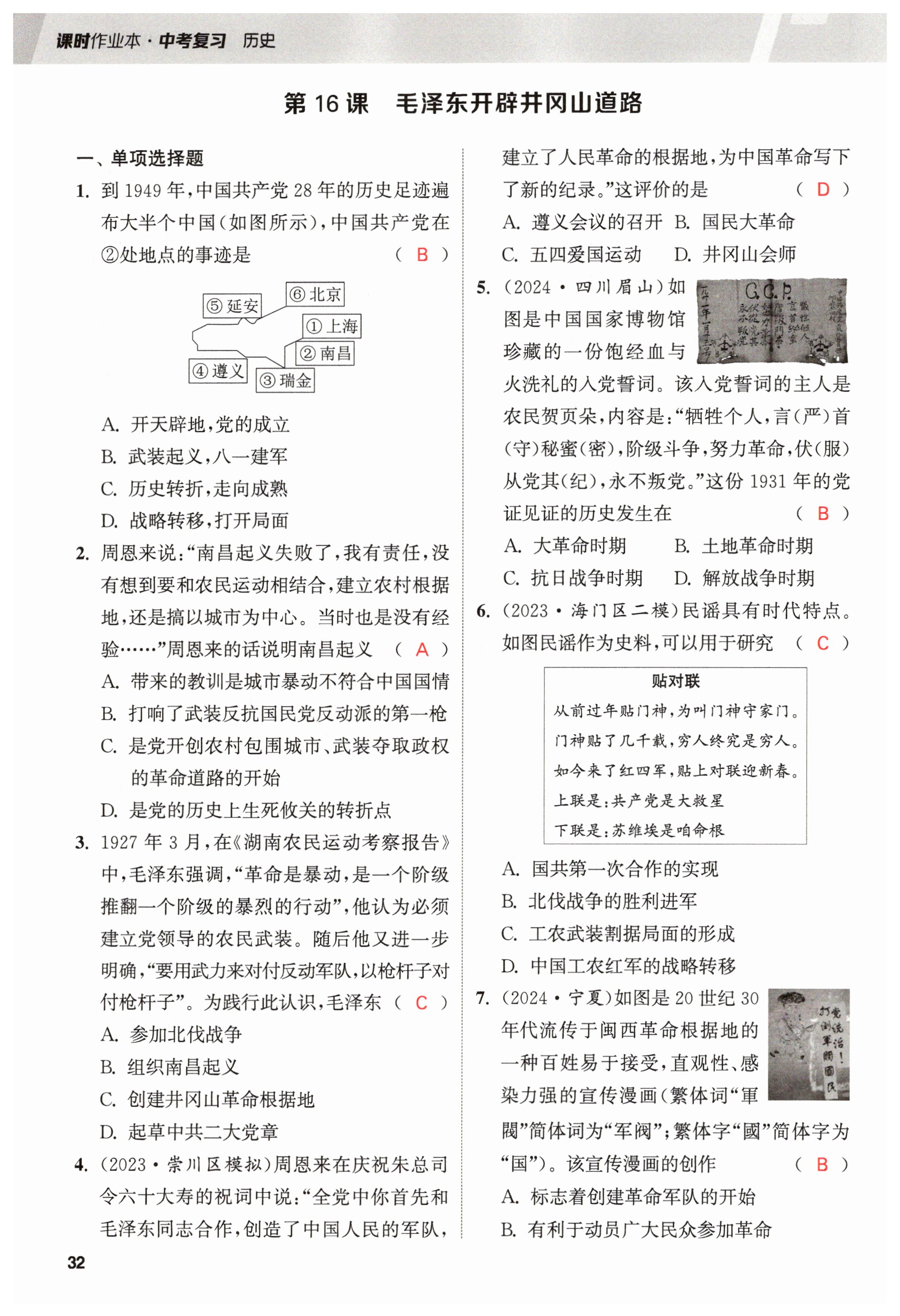 注:目前有些书本章节名称可能整理的还不是很完善,但都是按照顺序排列的,请同学们按照顺序仔细查找。练习册 2025年课时作业本中考复习历史 答案主要是用来给同学们做完题方便对答案用的,请勿直接抄袭。