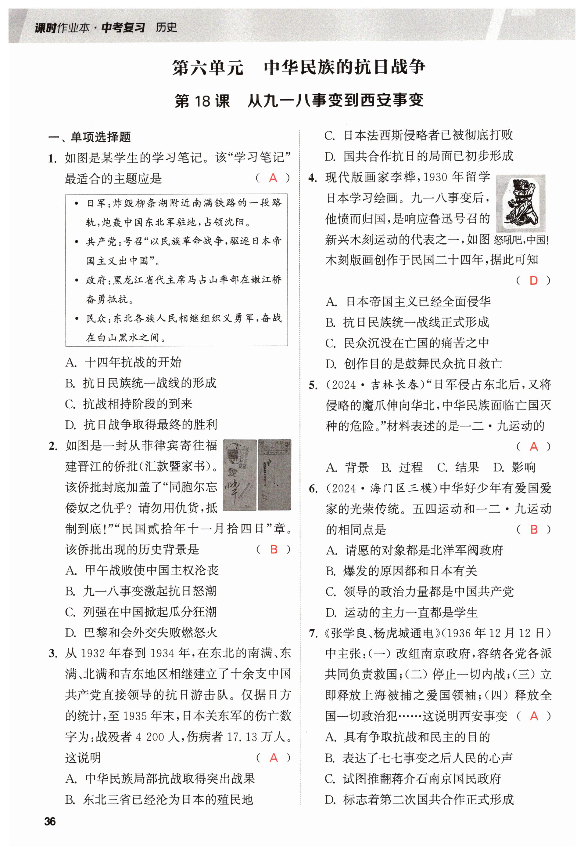 注:目前有些书本章节名称可能整理的还不是很完善,但都是按照顺序排列的,请同学们按照顺序仔细查找。练习册 2025年课时作业本中考复习历史 答案主要是用来给同学们做完题方便对答案用的,请勿直接抄袭。