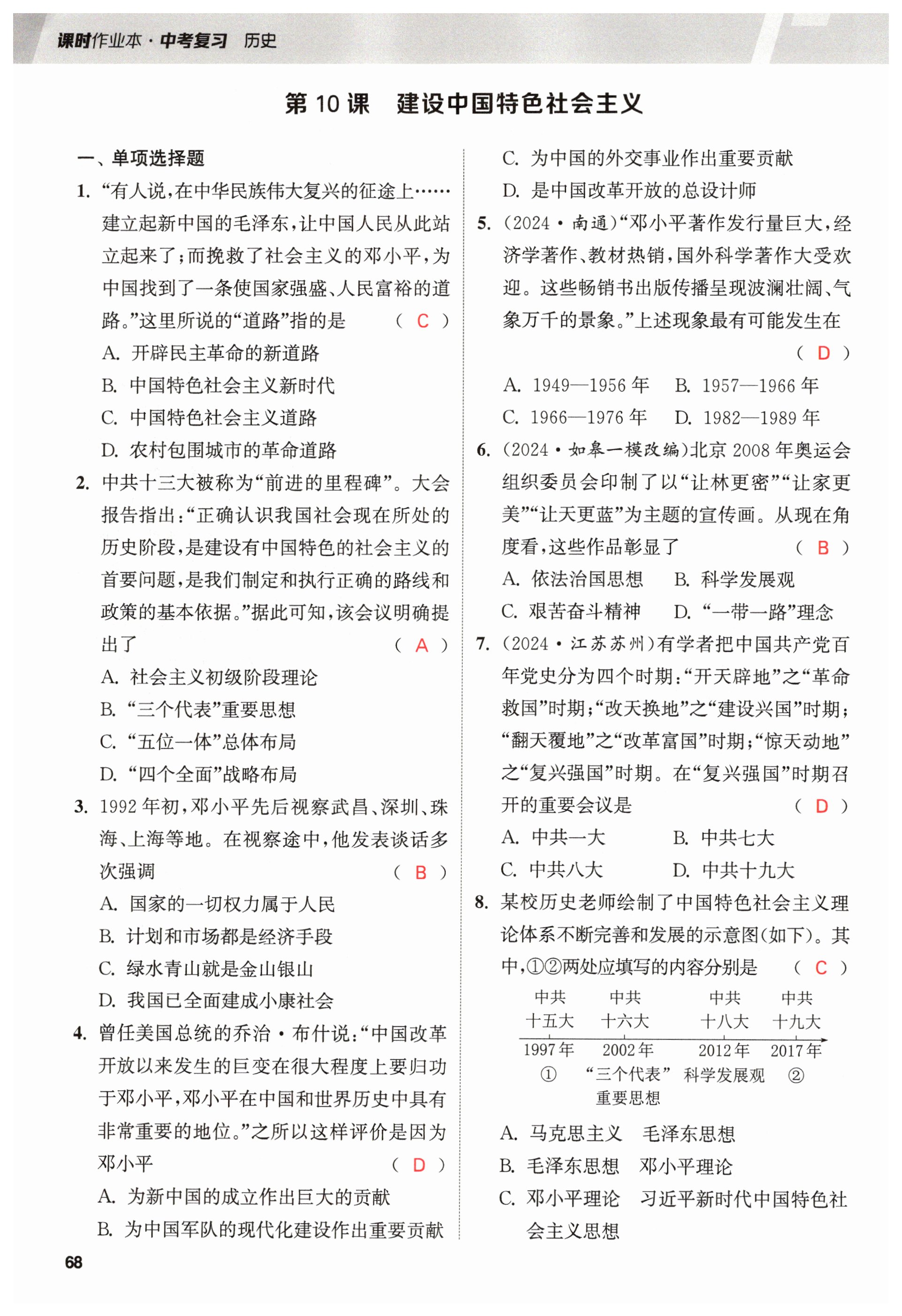 注:目前有些书本章节名称可能整理的还不是很完善,但都是按照顺序排列的,请同学们按照顺序仔细查找。练习册 2025年课时作业本中考复习历史 答案主要是用来给同学们做完题方便对答案用的,请勿直接抄袭。