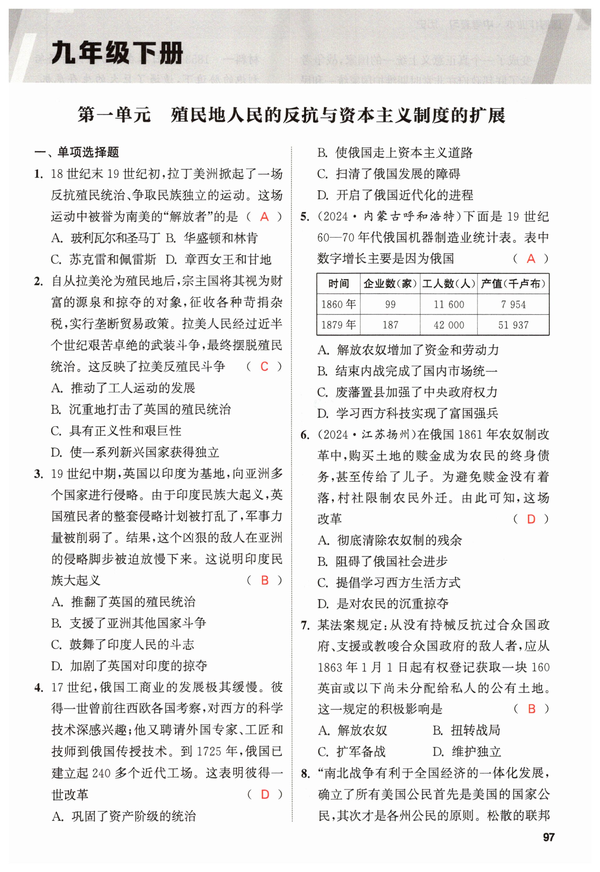注:目前有些书本章节名称可能整理的还不是很完善,但都是按照顺序排列的,请同学们按照顺序仔细查找。练习册 2025年课时作业本中考复习历史 答案主要是用来给同学们做完题方便对答案用的,请勿直接抄袭。
