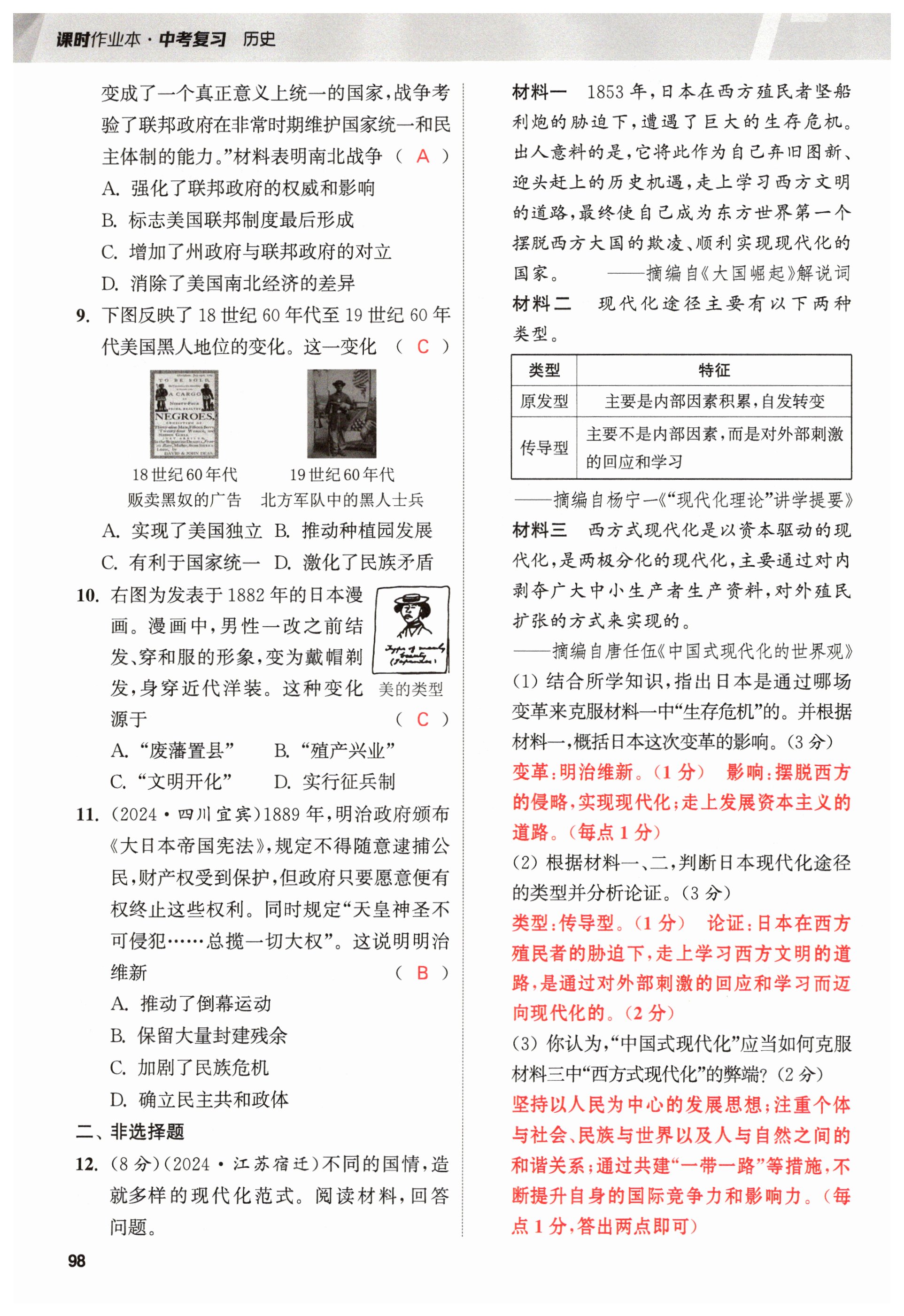 注:目前有些书本章节名称可能整理的还不是很完善,但都是按照顺序排列的,请同学们按照顺序仔细查找。练习册 2025年课时作业本中考复习历史 答案主要是用来给同学们做完题方便对答案用的,请勿直接抄袭。
