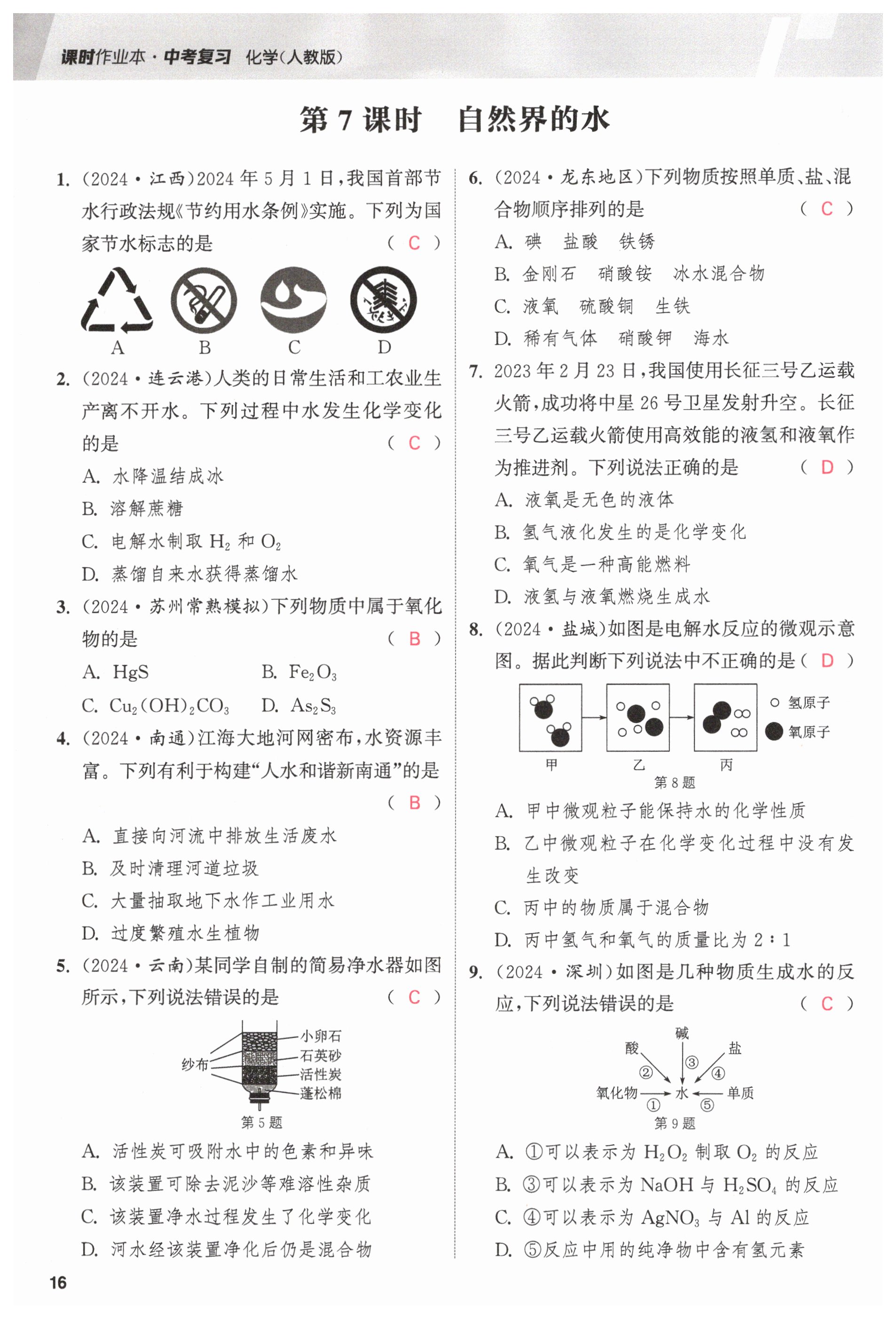 注:目前有些书本章节名称可能整理的还不是很完善,但都是按照顺序排列的,请同学们按照顺序仔细查找。练习册 2025年课时作业本中考复习化学 答案主要是用来给同学们做完题方便对答案用的,请勿直接抄袭。