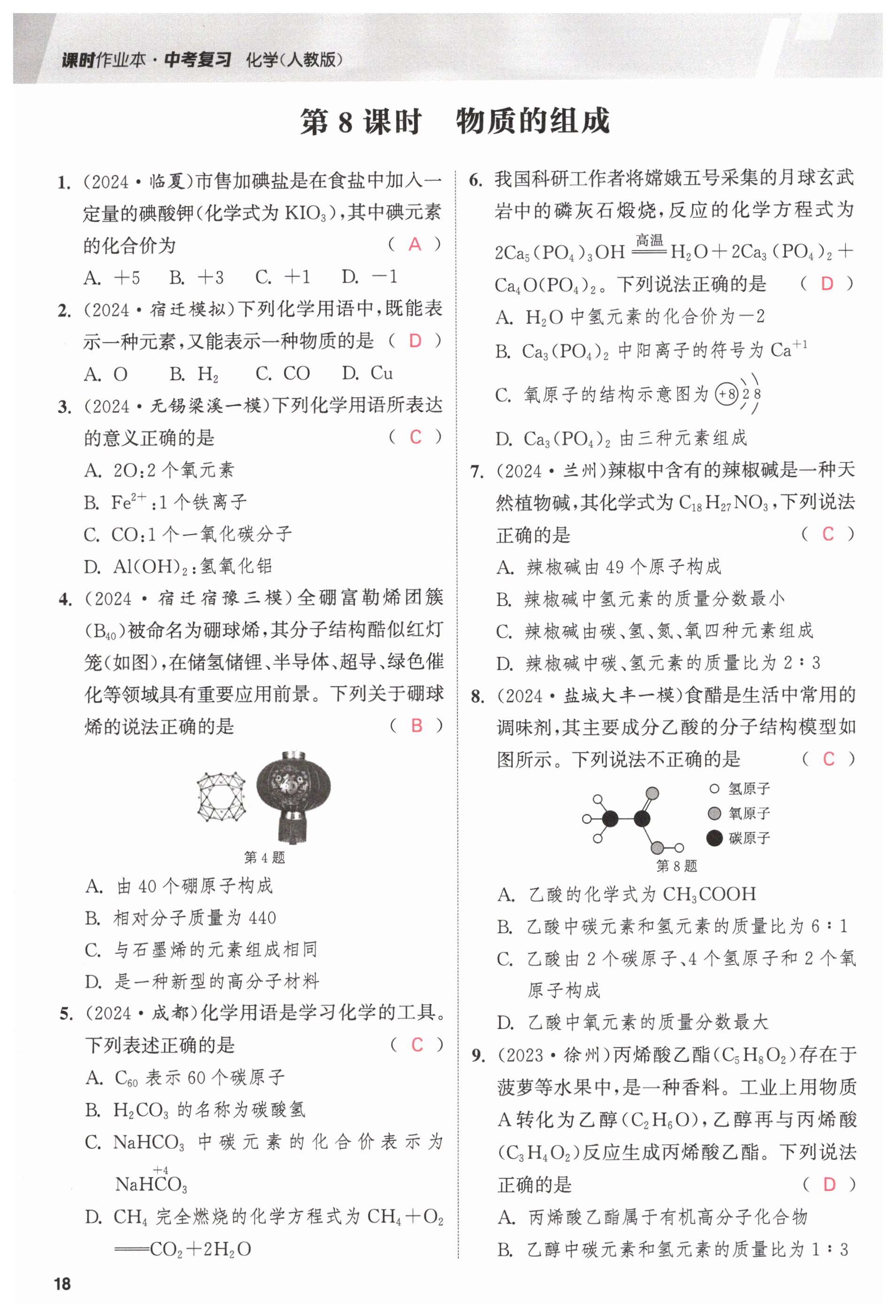 注:目前有些书本章节名称可能整理的还不是很完善,但都是按照顺序排列的,请同学们按照顺序仔细查找。练习册 2025年课时作业本中考复习化学 答案主要是用来给同学们做完题方便对答案用的,请勿直接抄袭。