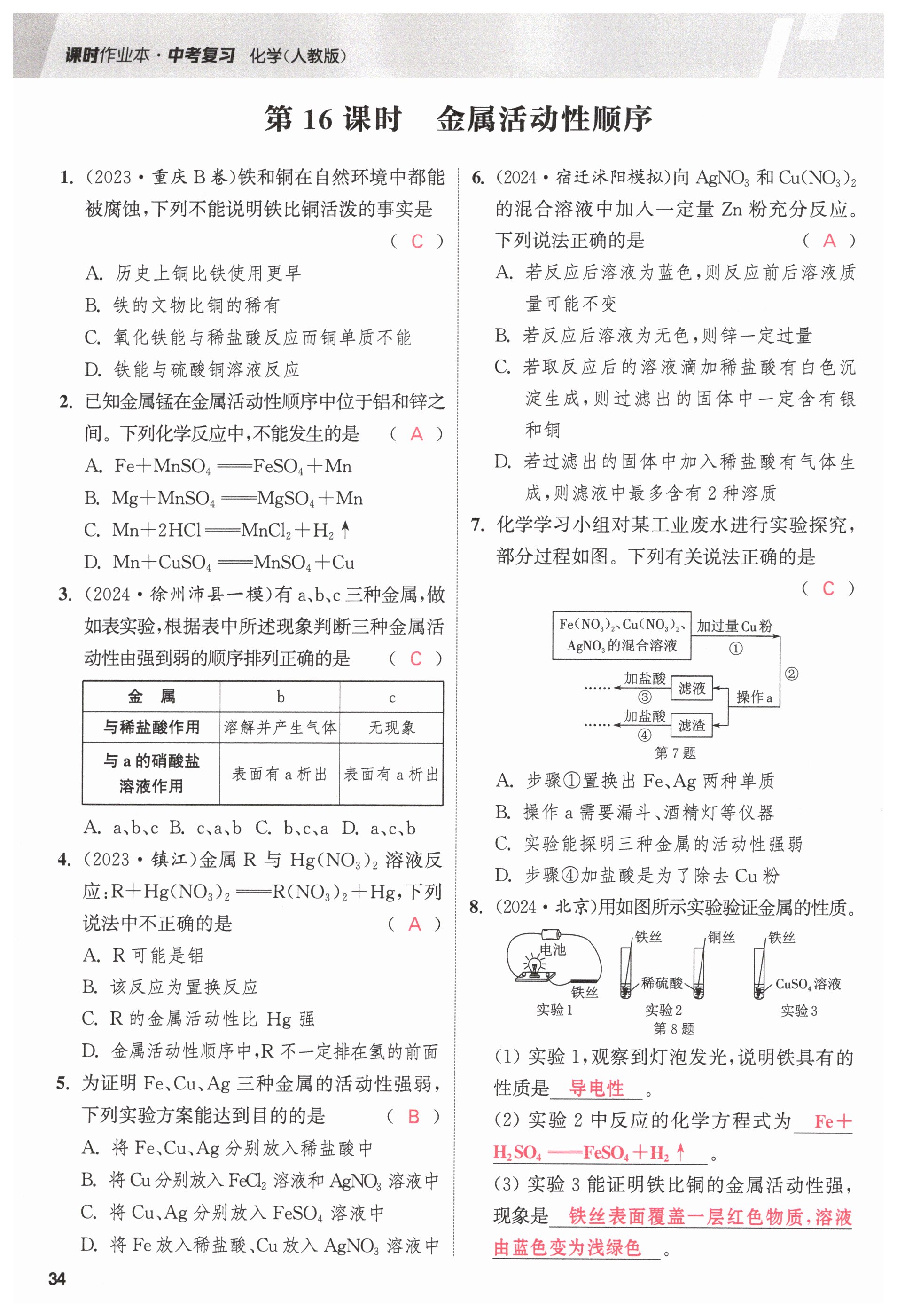 注:目前有些书本章节名称可能整理的还不是很完善,但都是按照顺序排列的,请同学们按照顺序仔细查找。练习册 2025年课时作业本中考复习化学 答案主要是用来给同学们做完题方便对答案用的,请勿直接抄袭。
