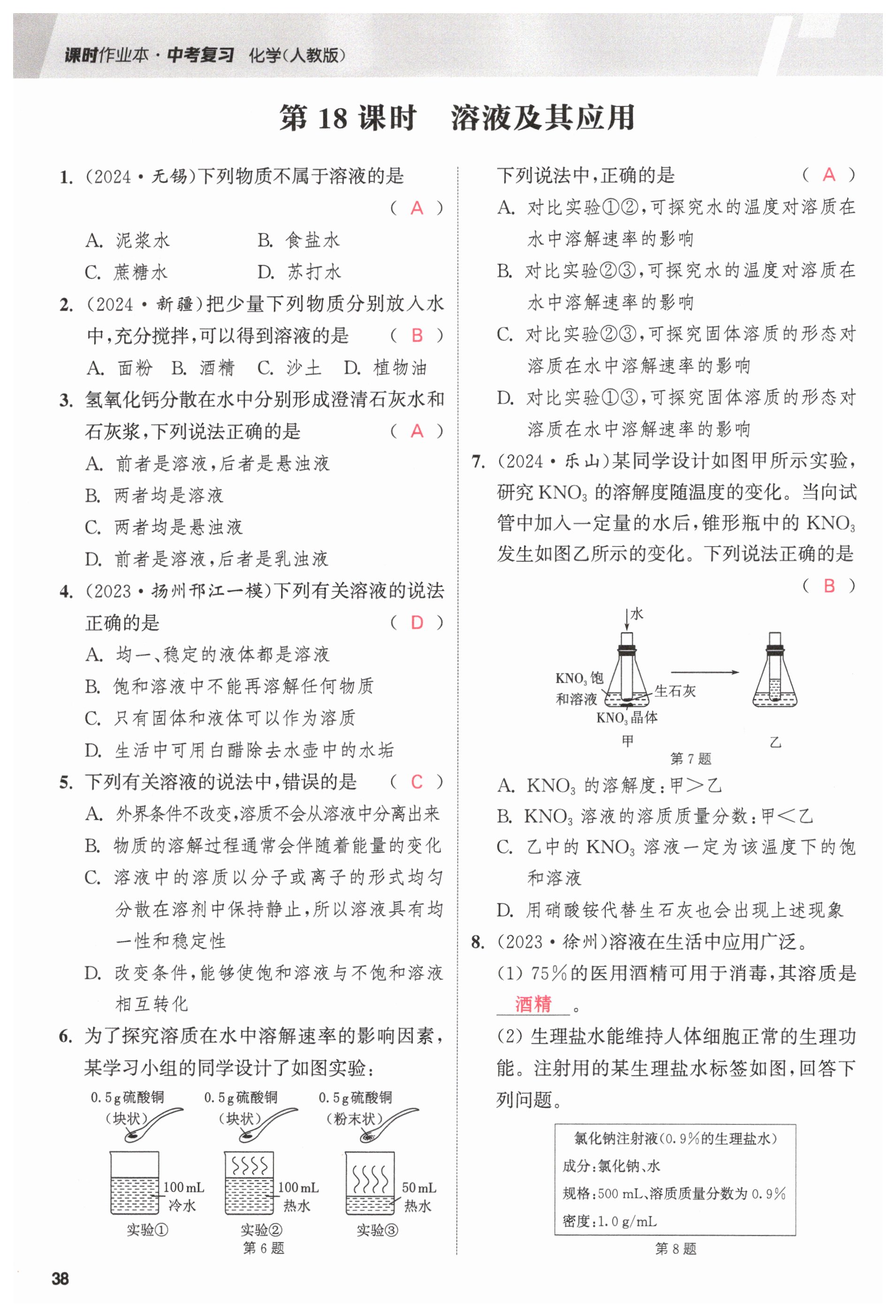 注:目前有些书本章节名称可能整理的还不是很完善,但都是按照顺序排列的,请同学们按照顺序仔细查找。练习册 2025年课时作业本中考复习化学 答案主要是用来给同学们做完题方便对答案用的,请勿直接抄袭。