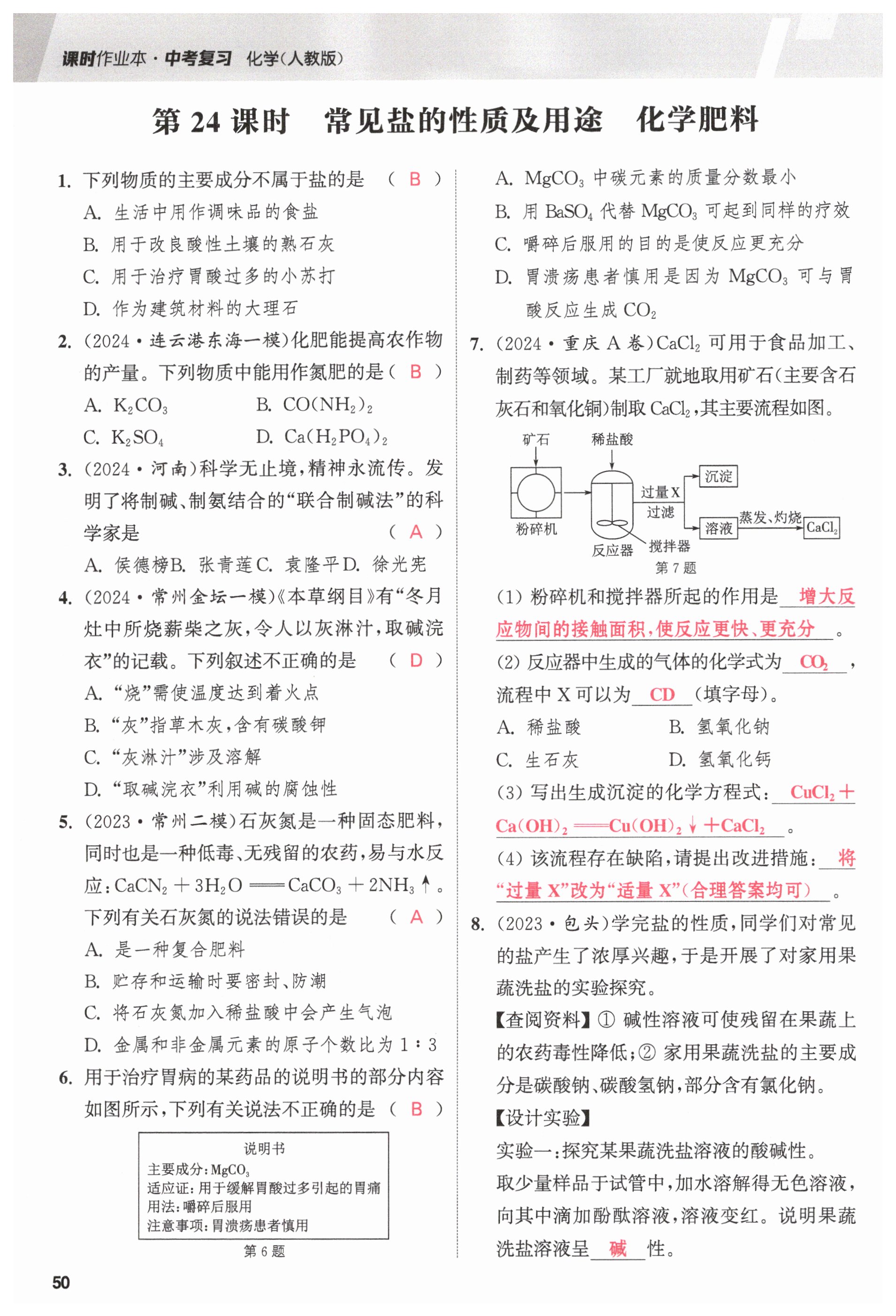 注:目前有些书本章节名称可能整理的还不是很完善,但都是按照顺序排列的,请同学们按照顺序仔细查找。练习册 2025年课时作业本中考复习化学 答案主要是用来给同学们做完题方便对答案用的,请勿直接抄袭。