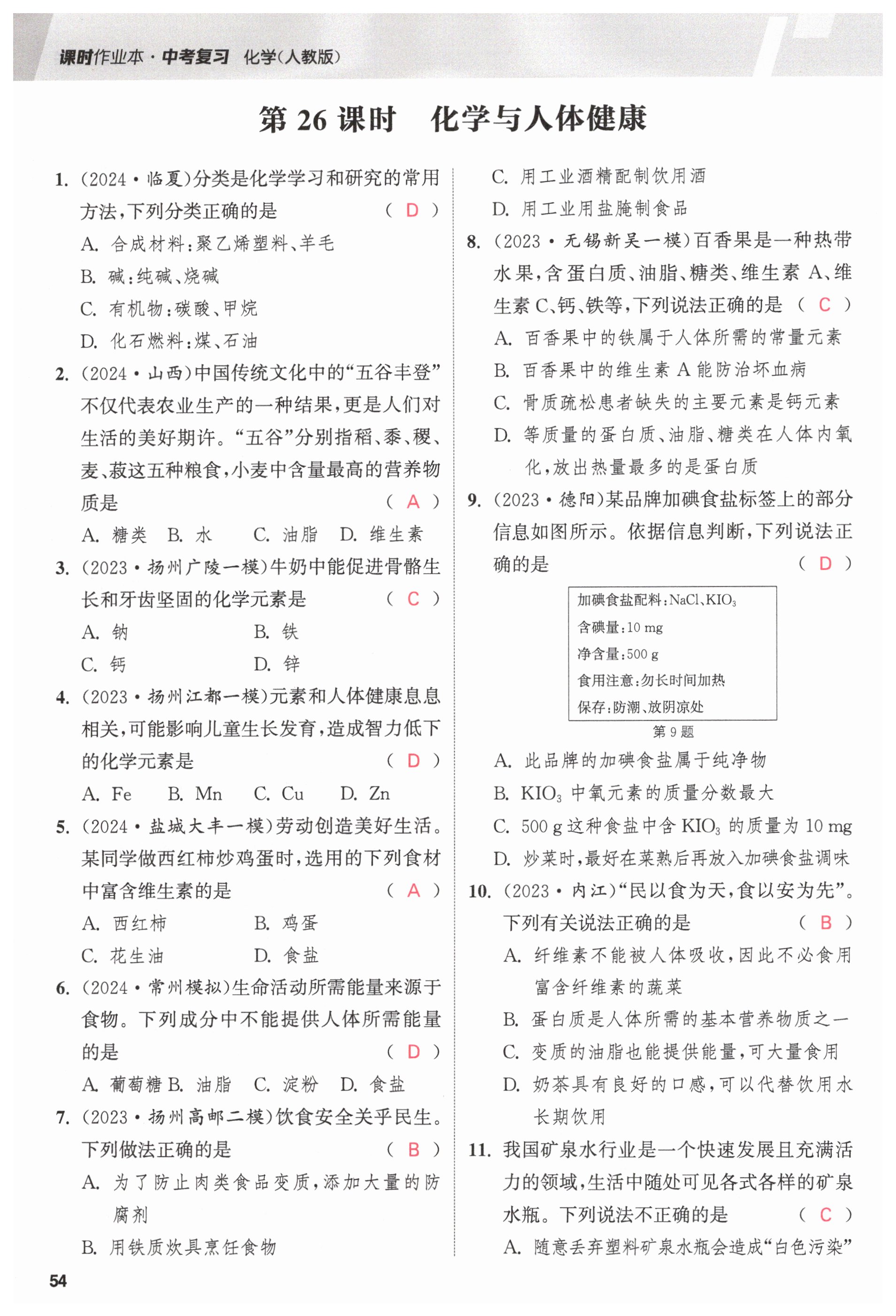 注:目前有些书本章节名称可能整理的还不是很完善,但都是按照顺序排列的,请同学们按照顺序仔细查找。练习册 2025年课时作业本中考复习化学 答案主要是用来给同学们做完题方便对答案用的,请勿直接抄袭。