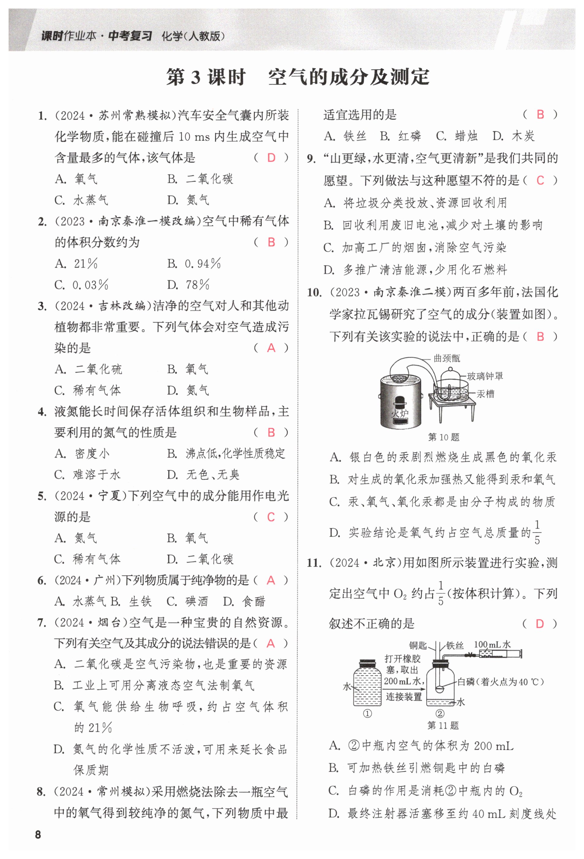 注:目前有些书本章节名称可能整理的还不是很完善,但都是按照顺序排列的,请同学们按照顺序仔细查找。练习册 2025年课时作业本中考复习化学 答案主要是用来给同学们做完题方便对答案用的,请勿直接抄袭。