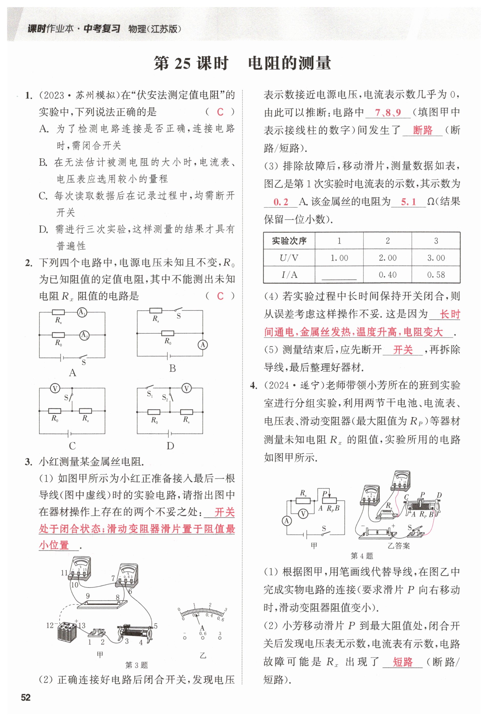 2025年课时作业本中考复习物理