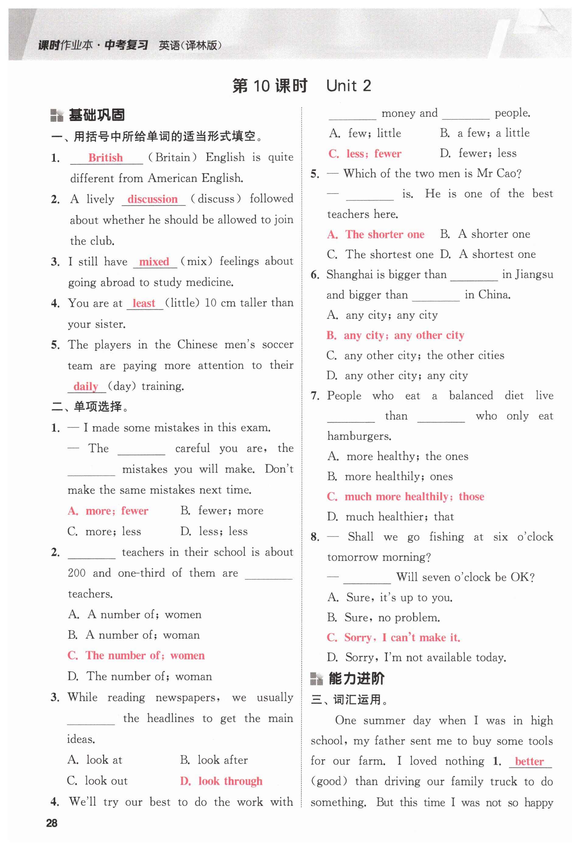 注:目前有些书本章节名称可能整理的还不是很完善,但都是按照顺序排列的,请同学们按照顺序仔细查找。练习册 2025年课时作业本中考复习英语 答案主要是用来给同学们做完题方便对答案用的,请勿直接抄袭。