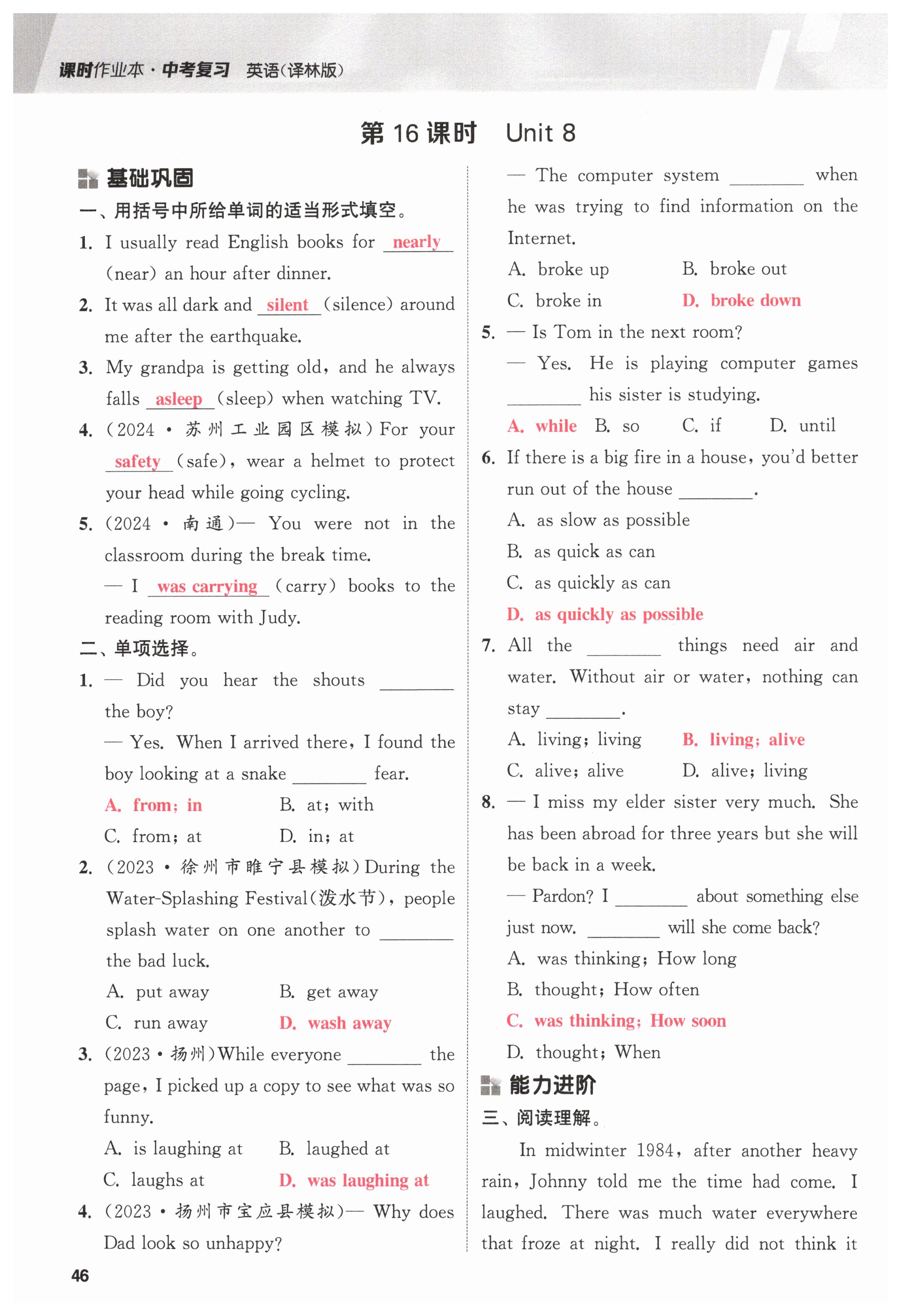 注:目前有些书本章节名称可能整理的还不是很完善,但都是按照顺序排列的,请同学们按照顺序仔细查找。练习册 2025年课时作业本中考复习英语 答案主要是用来给同学们做完题方便对答案用的,请勿直接抄袭。