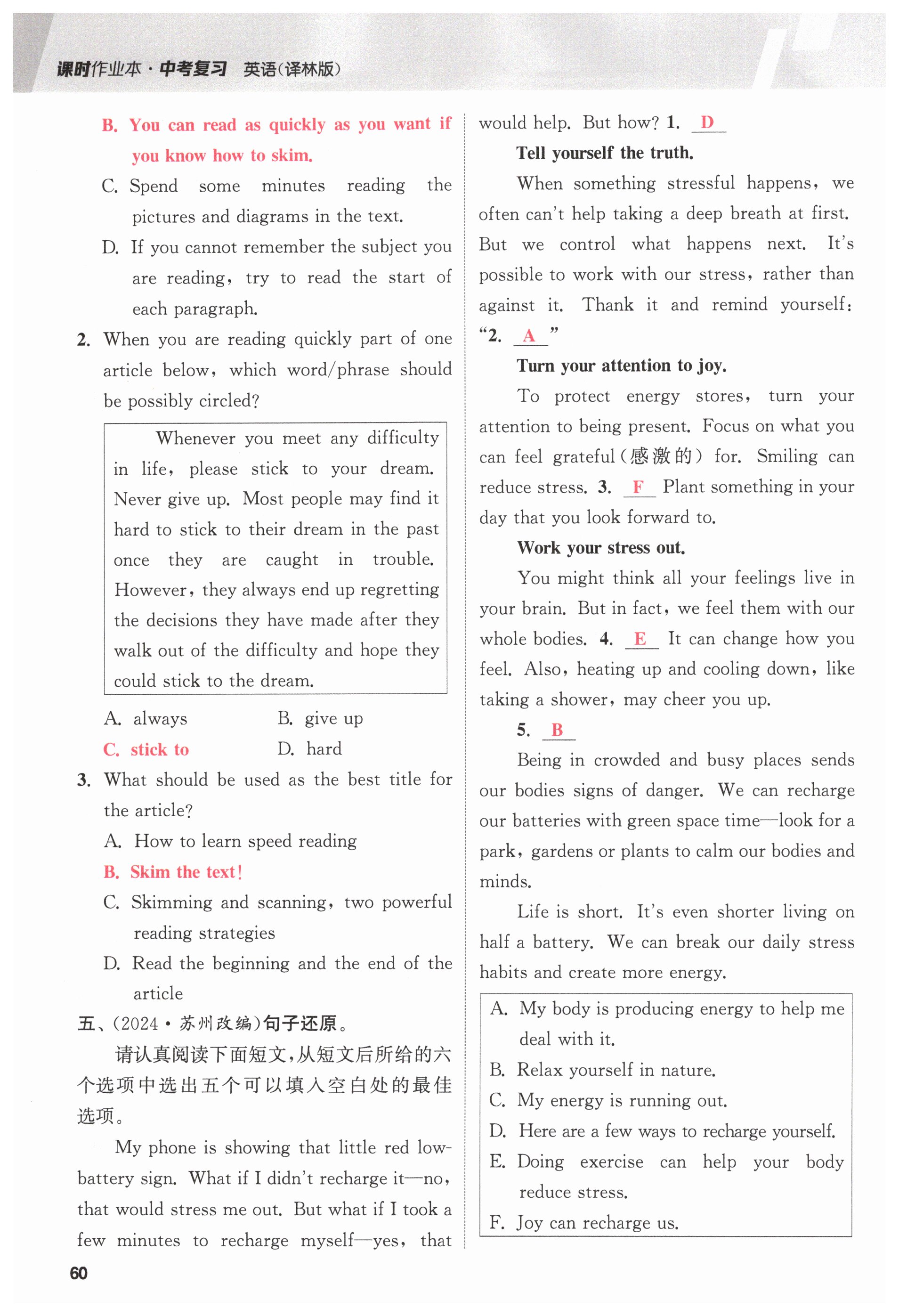 注:目前有些书本章节名称可能整理的还不是很完善,但都是按照顺序排列的,请同学们按照顺序仔细查找。练习册 2025年课时作业本中考复习英语 答案主要是用来给同学们做完题方便对答案用的,请勿直接抄袭。