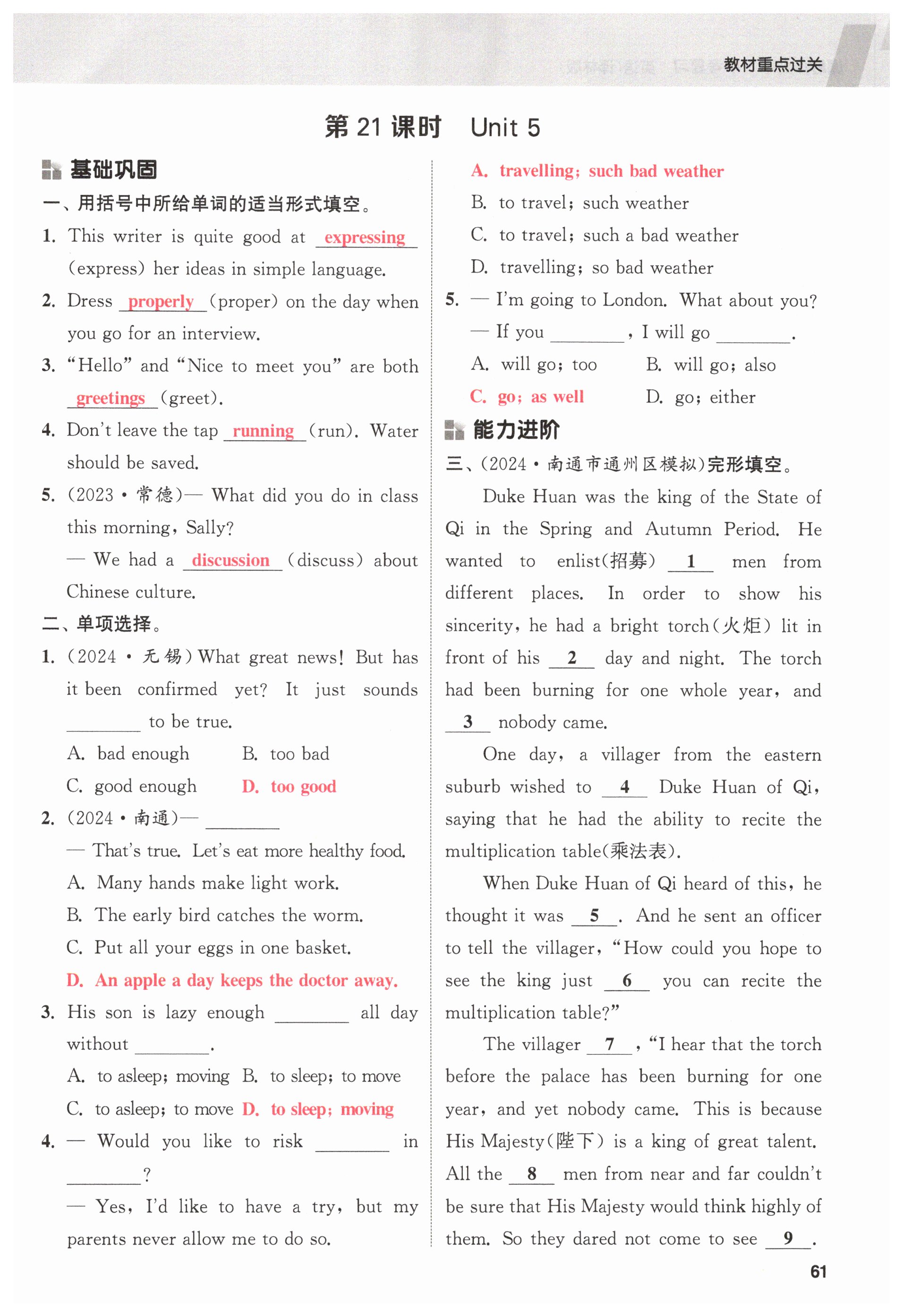注:目前有些书本章节名称可能整理的还不是很完善,但都是按照顺序排列的,请同学们按照顺序仔细查找。练习册 2025年课时作业本中考复习英语 答案主要是用来给同学们做完题方便对答案用的,请勿直接抄袭。