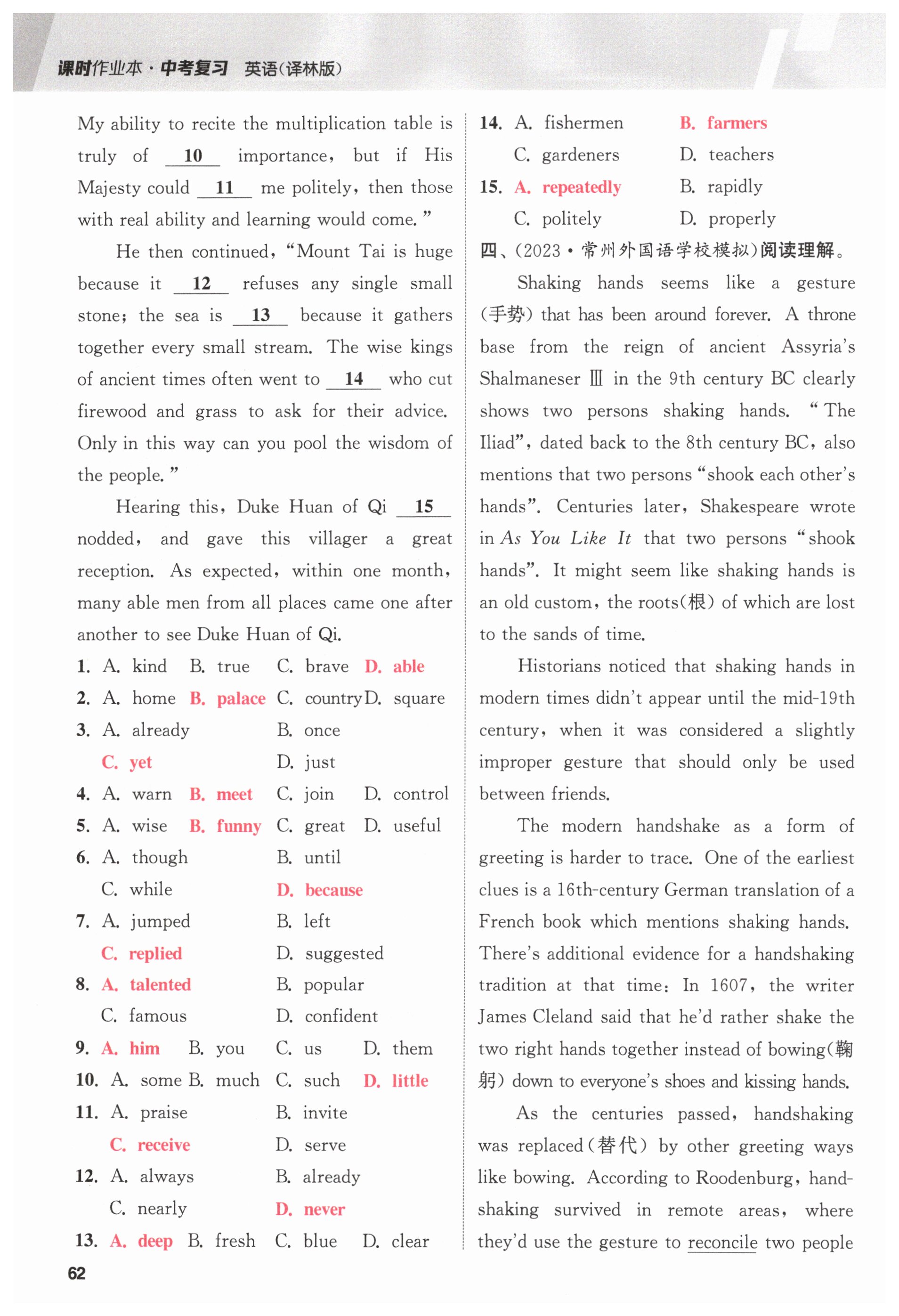 注:目前有些书本章节名称可能整理的还不是很完善,但都是按照顺序排列的,请同学们按照顺序仔细查找。练习册 2025年课时作业本中考复习英语 答案主要是用来给同学们做完题方便对答案用的,请勿直接抄袭。