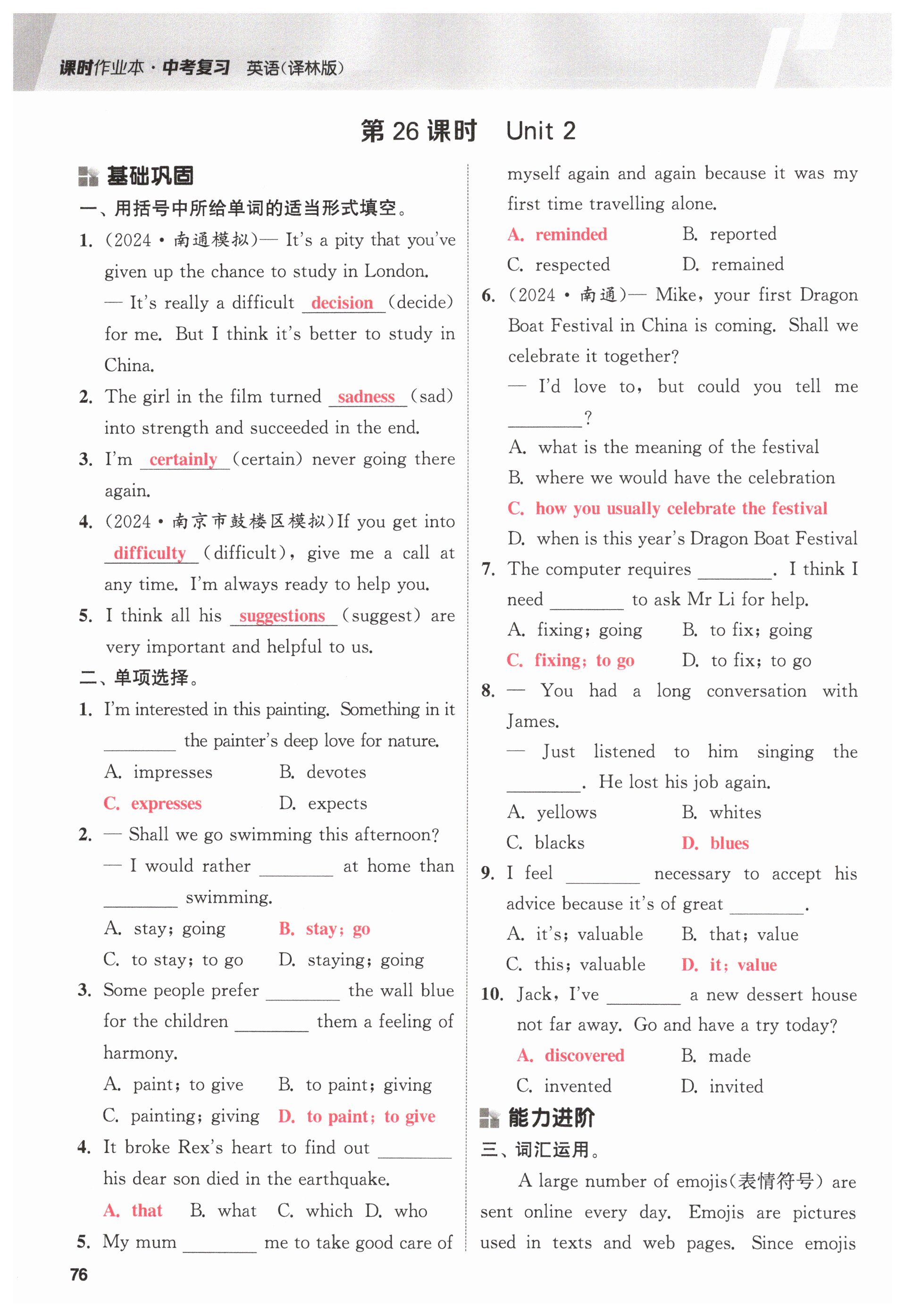注:目前有些书本章节名称可能整理的还不是很完善,但都是按照顺序排列的,请同学们按照顺序仔细查找。练习册 2025年课时作业本中考复习英语 答案主要是用来给同学们做完题方便对答案用的,请勿直接抄袭。