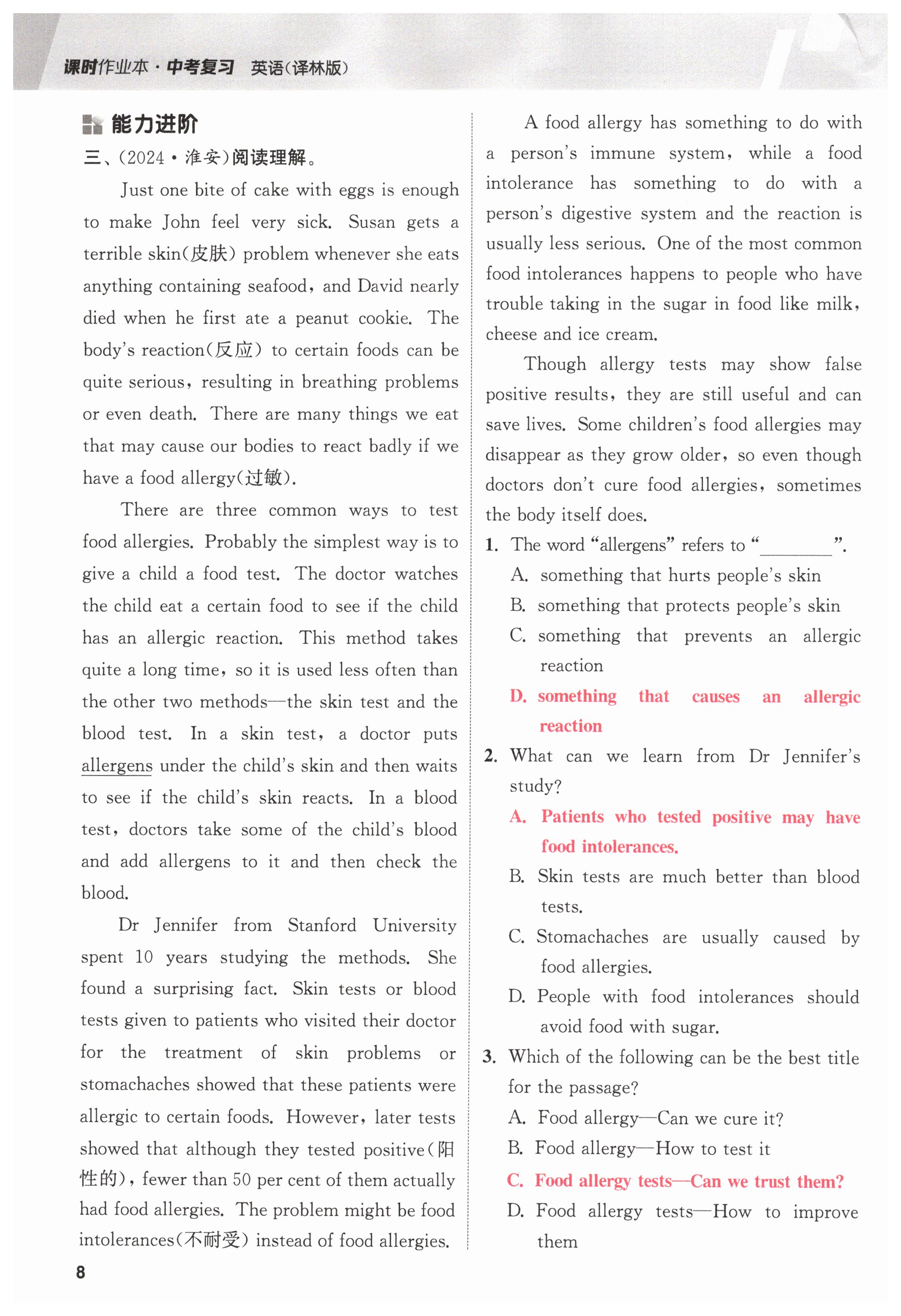 注:目前有些书本章节名称可能整理的还不是很完善,但都是按照顺序排列的,请同学们按照顺序仔细查找。练习册 2025年课时作业本中考复习英语 答案主要是用来给同学们做完题方便对答案用的,请勿直接抄袭。