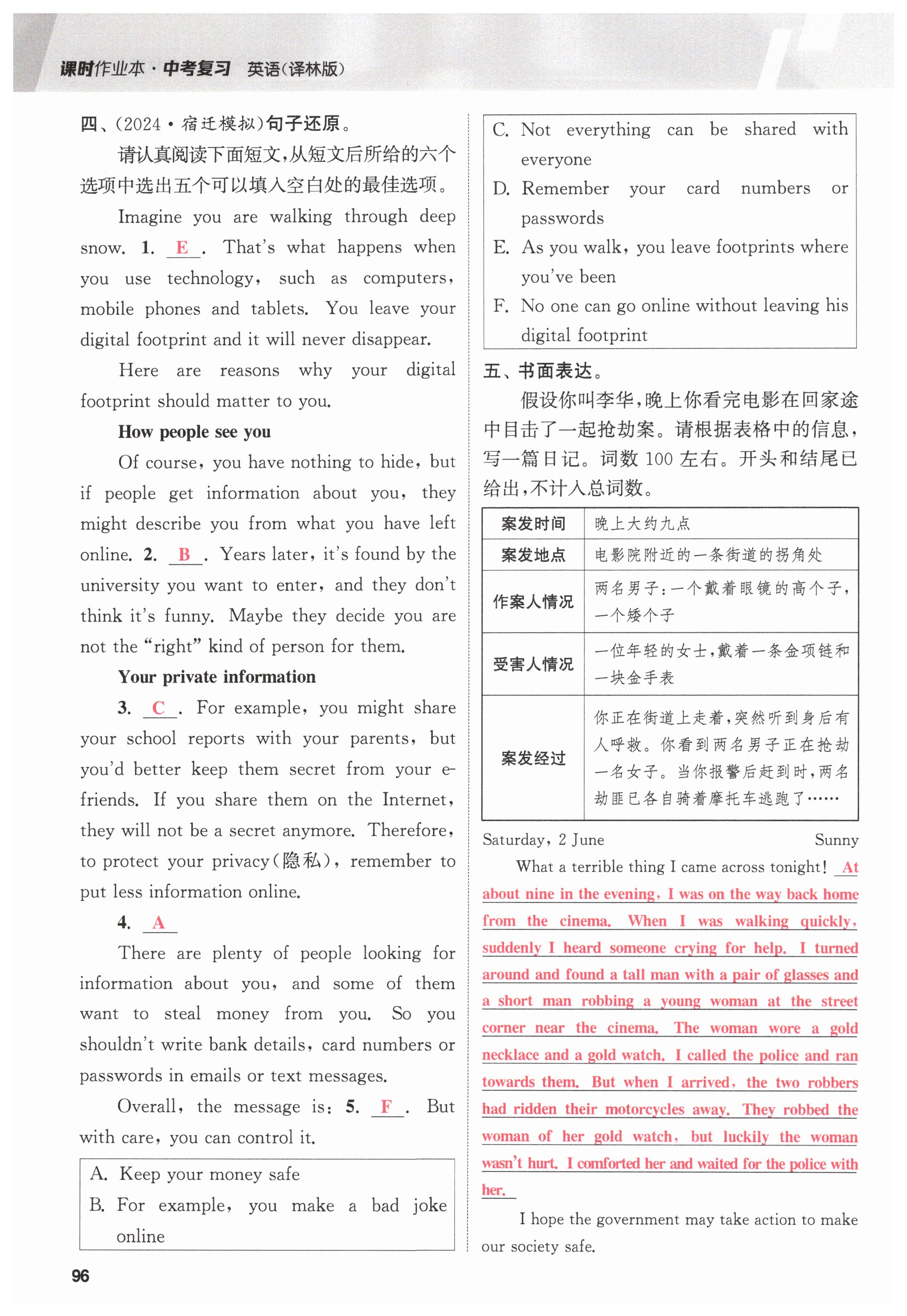 注:目前有些书本章节名称可能整理的还不是很完善,但都是按照顺序排列的,请同学们按照顺序仔细查找。练习册 2025年课时作业本中考复习英语 答案主要是用来给同学们做完题方便对答案用的,请勿直接抄袭。