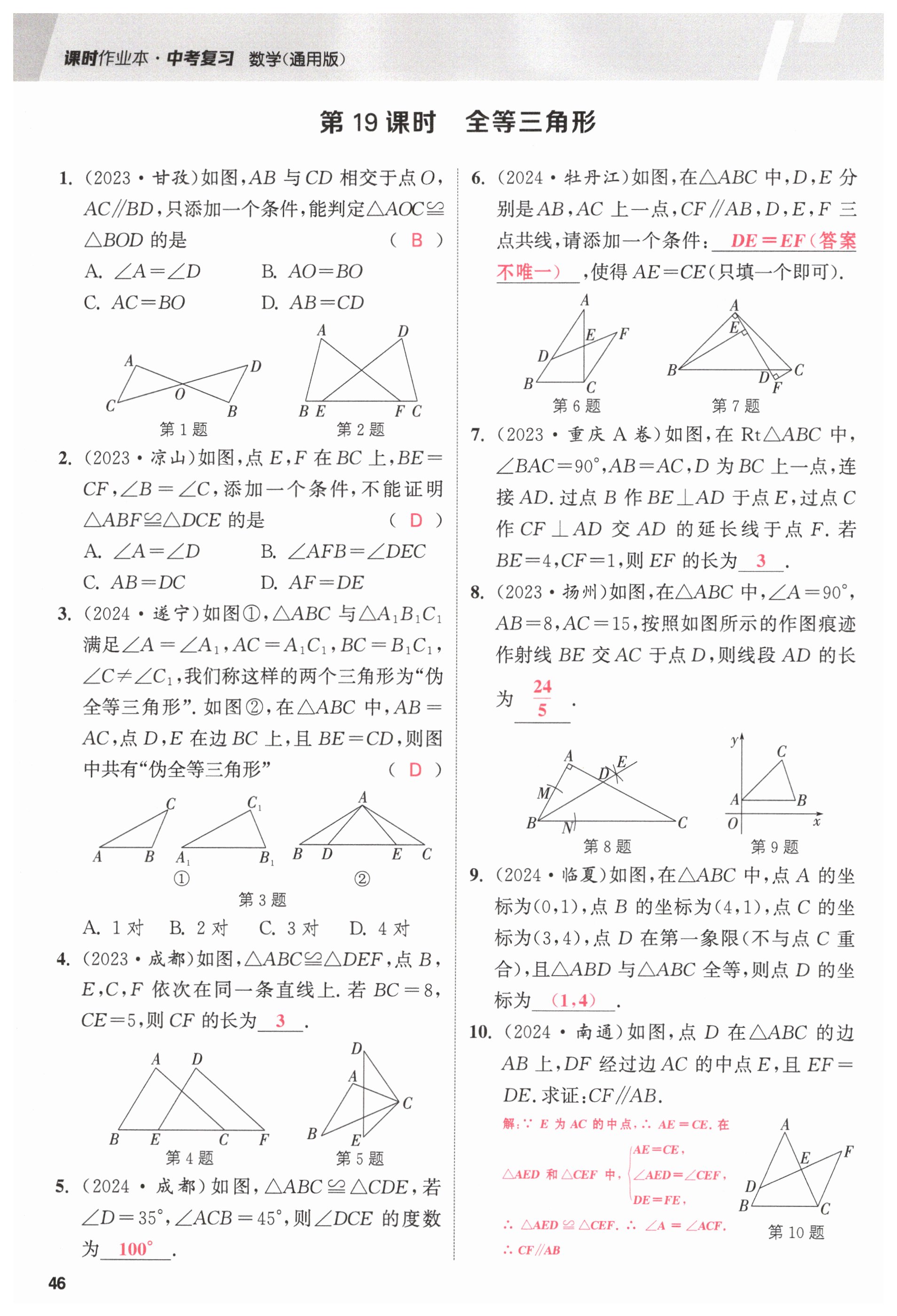 注:目前有些书本章节名称可能整理的还不是很完善,但都是按照顺序排列的,请同学们按照顺序仔细查找。练习册 2025年课时作业本中考复习数学 答案主要是用来给同学们做完题方便对答案用的,请勿直接抄袭。