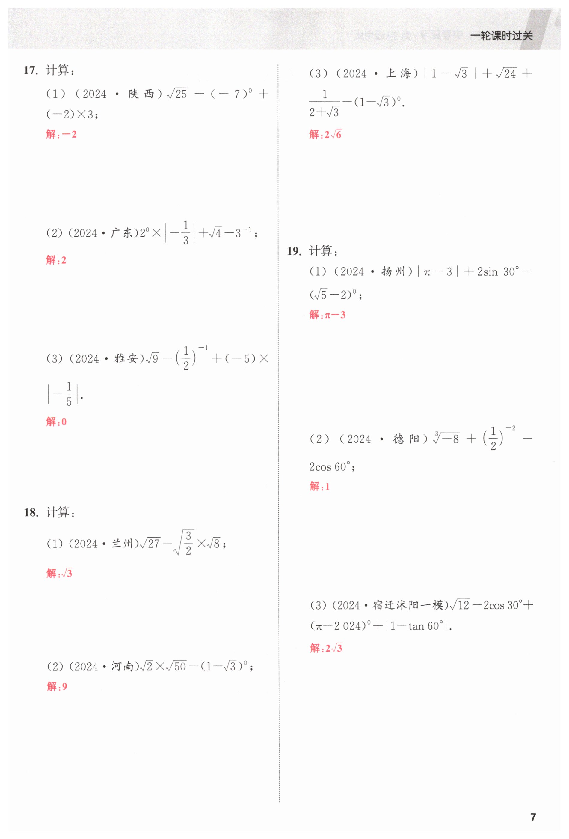 注:目前有些书本章节名称可能整理的还不是很完善,但都是按照顺序排列的,请同学们按照顺序仔细查找。练习册 2025年课时作业本中考复习数学 答案主要是用来给同学们做完题方便对答案用的,请勿直接抄袭。