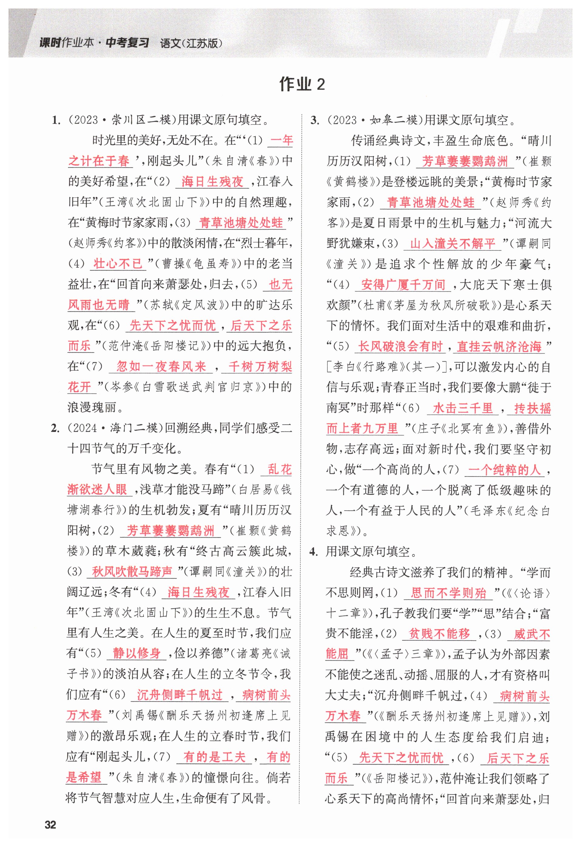 注:目前有些书本章节名称可能整理的还不是很完善,但都是按照顺序排列的,请同学们按照顺序仔细查找。练习册 2025年课时作业本中考复习语文 答案主要是用来给同学们做完题方便对答案用的,请勿直接抄袭。