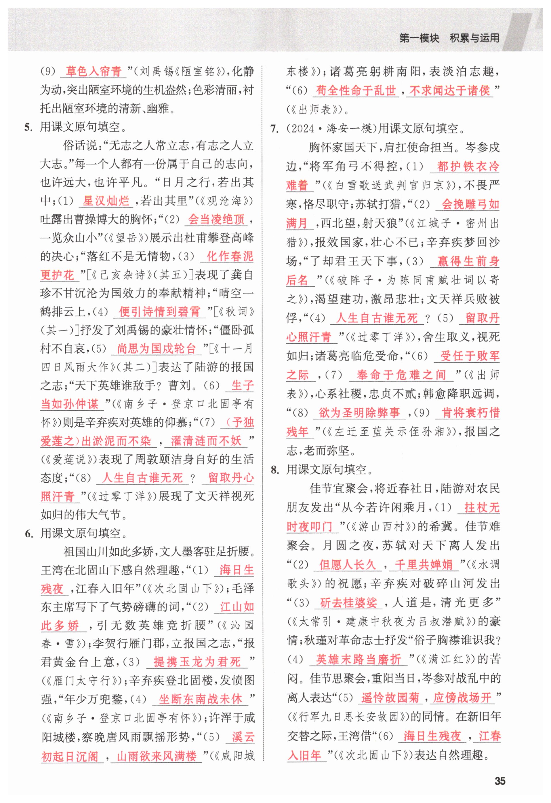 注:目前有些书本章节名称可能整理的还不是很完善,但都是按照顺序排列的,请同学们按照顺序仔细查找。练习册 2025年课时作业本中考复习语文 答案主要是用来给同学们做完题方便对答案用的,请勿直接抄袭。
