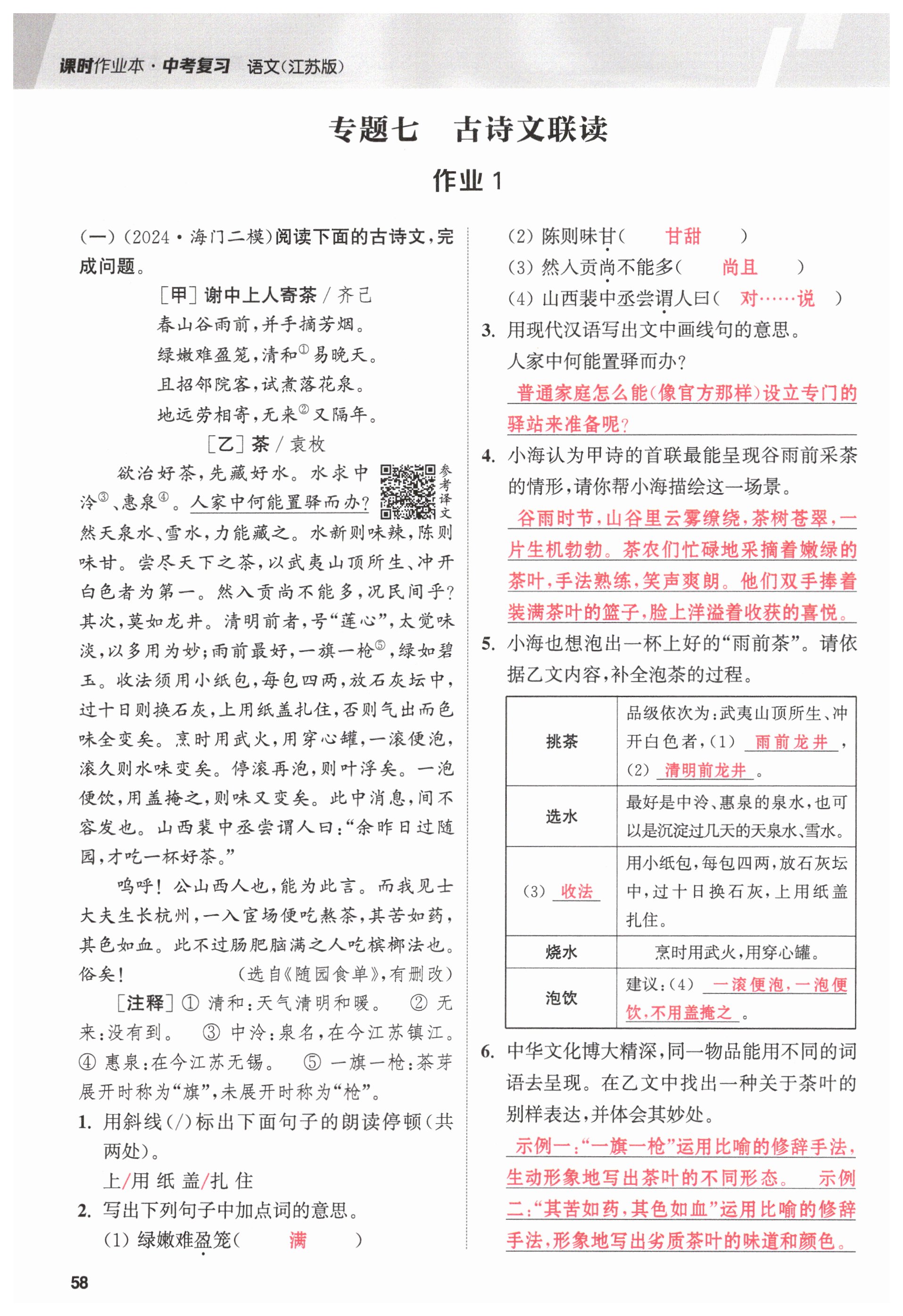 注:目前有些书本章节名称可能整理的还不是很完善,但都是按照顺序排列的,请同学们按照顺序仔细查找。练习册 2025年课时作业本中考复习语文 答案主要是用来给同学们做完题方便对答案用的,请勿直接抄袭。