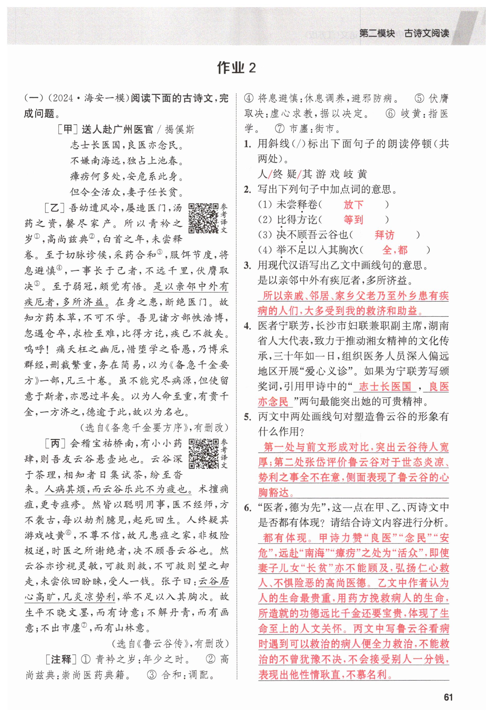 注:目前有些书本章节名称可能整理的还不是很完善,但都是按照顺序排列的,请同学们按照顺序仔细查找。练习册 2025年课时作业本中考复习语文 答案主要是用来给同学们做完题方便对答案用的,请勿直接抄袭。