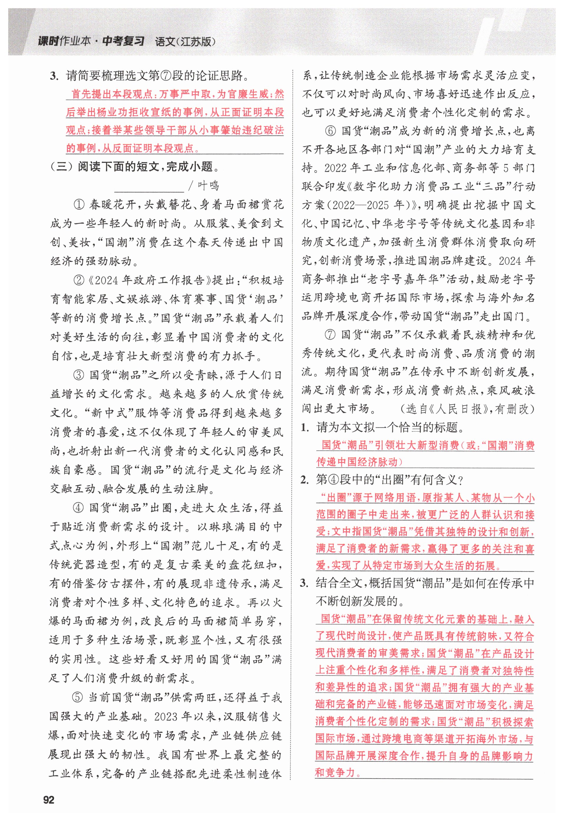 注:目前有些书本章节名称可能整理的还不是很完善,但都是按照顺序排列的,请同学们按照顺序仔细查找。练习册 2025年课时作业本中考复习语文 答案主要是用来给同学们做完题方便对答案用的,请勿直接抄袭。