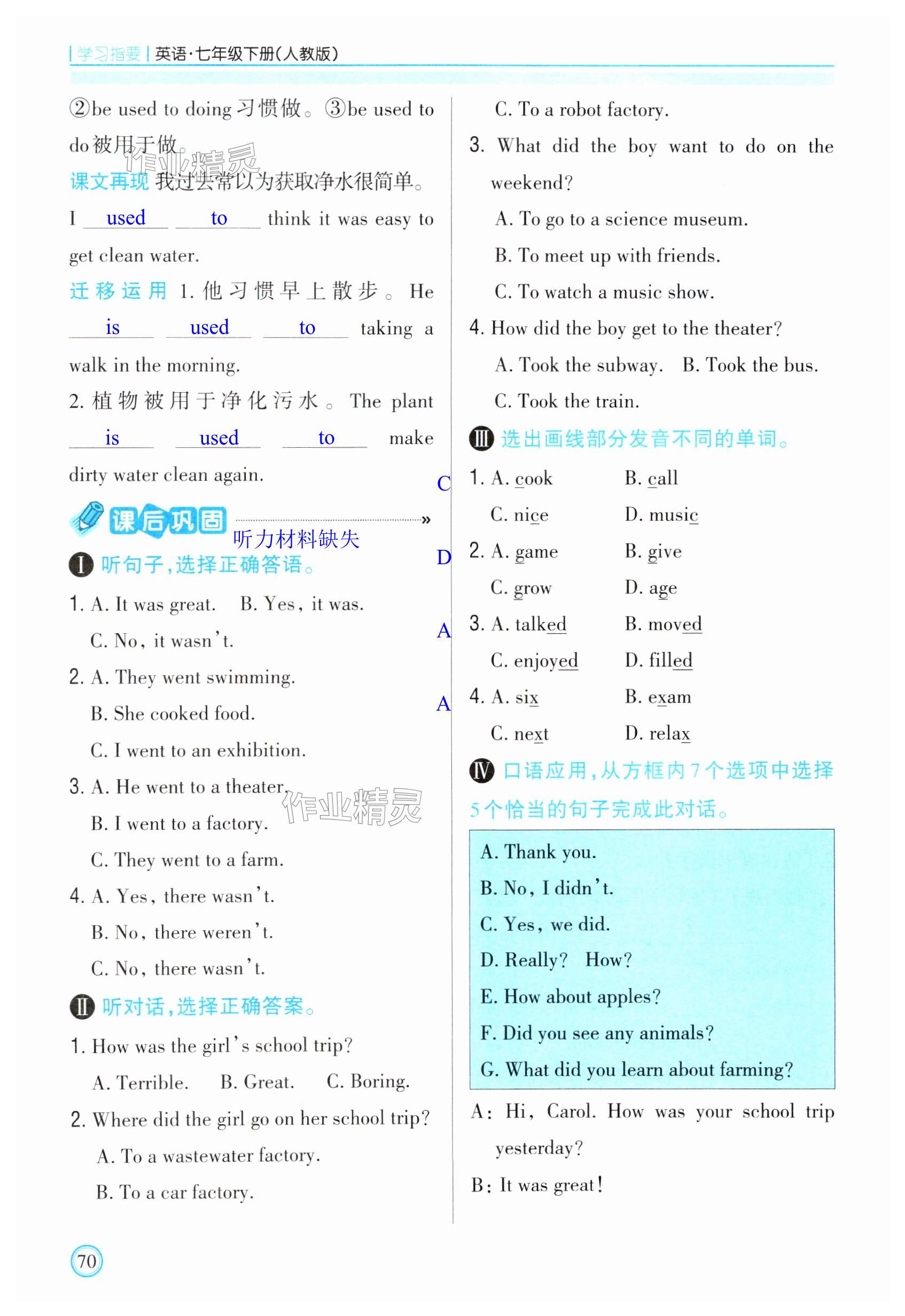 注:目前有些书本章节名称可能整理的还不是很完善,但都是按照顺序排列的,请同学们按照顺序仔细查找。练习册 2025年学习指要七年级英语下册人教版 答案主要是用来给同学们做完题方便对答案用的,请勿直接抄袭。