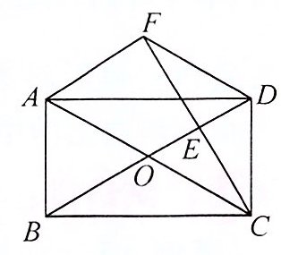 【例 2】 如图,矩形 $ABCD$ 的对角线相交于点 $O$,$F$ 是矩形 $ABCD$ 上方一点,连接 $CF$ 交 $BD$ 于点 $E$,且 $E$ 是 $CF$ 的中点,连接 $AF$,$DF$,$DF // AC$.