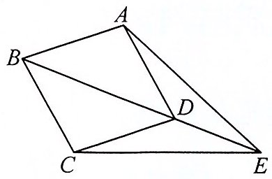 【变式】如图,$E$ 为菱形 $ABCD$ 的对角线 $BD$ 延长线上一点,连接 $AE$,$CE$。