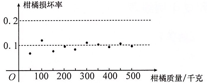 【分析】 (1)根据图形即可得出柑橘损坏的概率,再用整体“1”减去柑橘损坏的概率即可得出柑橘完好的概率;(2)根据(1)所得的柑橘完好的概率乘这批柑橘的总质量即可;(3)先设出每千克柑橘定价为 $ x $ 元,根据题意列出方程即可求出答案.