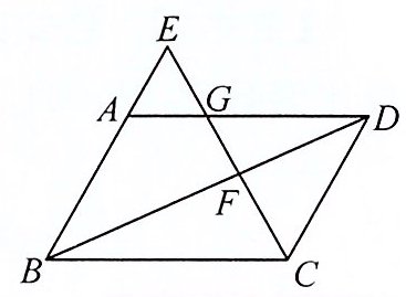 【例 2】 如图,$ E $ 为 $ □ ABCD $ 的边 $ BA $ 的延长线上一点,$ CE $ 分别截 $ AD $,$ BD $ 于点 $ G $,$ F $。求证:$ CF^2 = GF \cdot EF $。