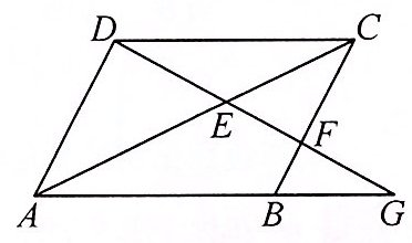 【变式】 如图,在 $□ ABCD$ 中,$G$ 是 $AB$ 的延长线上一点,连接 $DG$,分别交 $AC$,$BC$ 于点 $E$,$F$,且 $AE:EC = 3:2$.