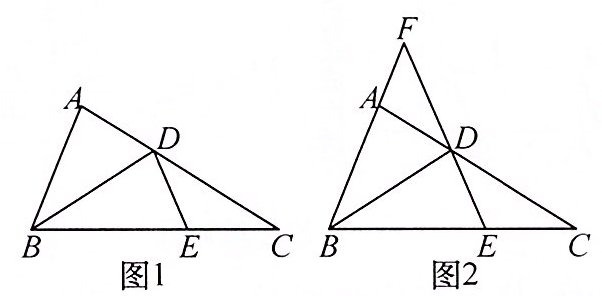 【例】如图 1,在△ABC 中,点 D,E 分别在边 AC,BC 上,BD = DC,BD·BC = BE·AC.