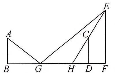 【分析】根据镜面反射原理结合相似三角形的判定方法得出 $ \triangle EFH \sim \triangle CDH $,$ \triangle EFG \sim \triangle ABG $,进而利用相似三角形的性质得出 $ EF $ 的长。