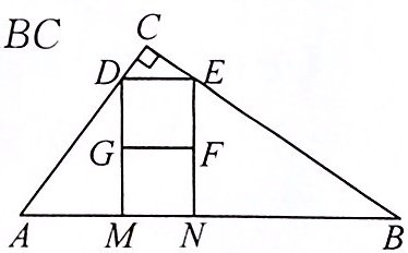 $【$变式$】$在$Rt\triangle ABC$中,按如图所示的方式放置两个正方形,使得顶点$D,$$E,$$M,$$N$均在三角形的边上$. $若$AC = 3,$$BC = 4,$则小正方形的边长为
